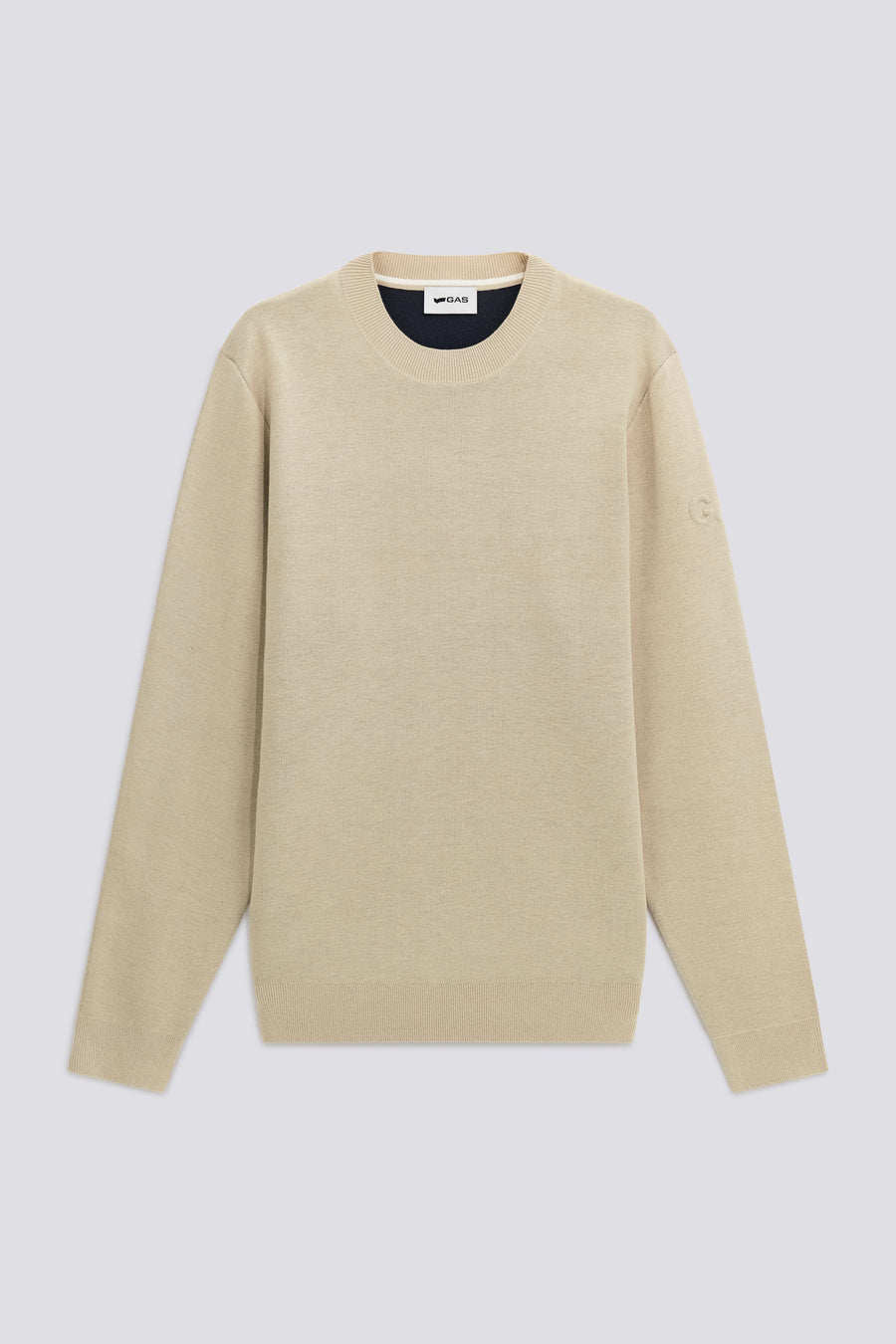 Men’s crewneck sweater regular fit, the perfect balance between style and comfort. Made from bi-color tubular fabric in a viscose blend, it features an embossed logo on the sleeve. Perfect to pair with denim for a relaxed look or with chinos for effortless elegance.