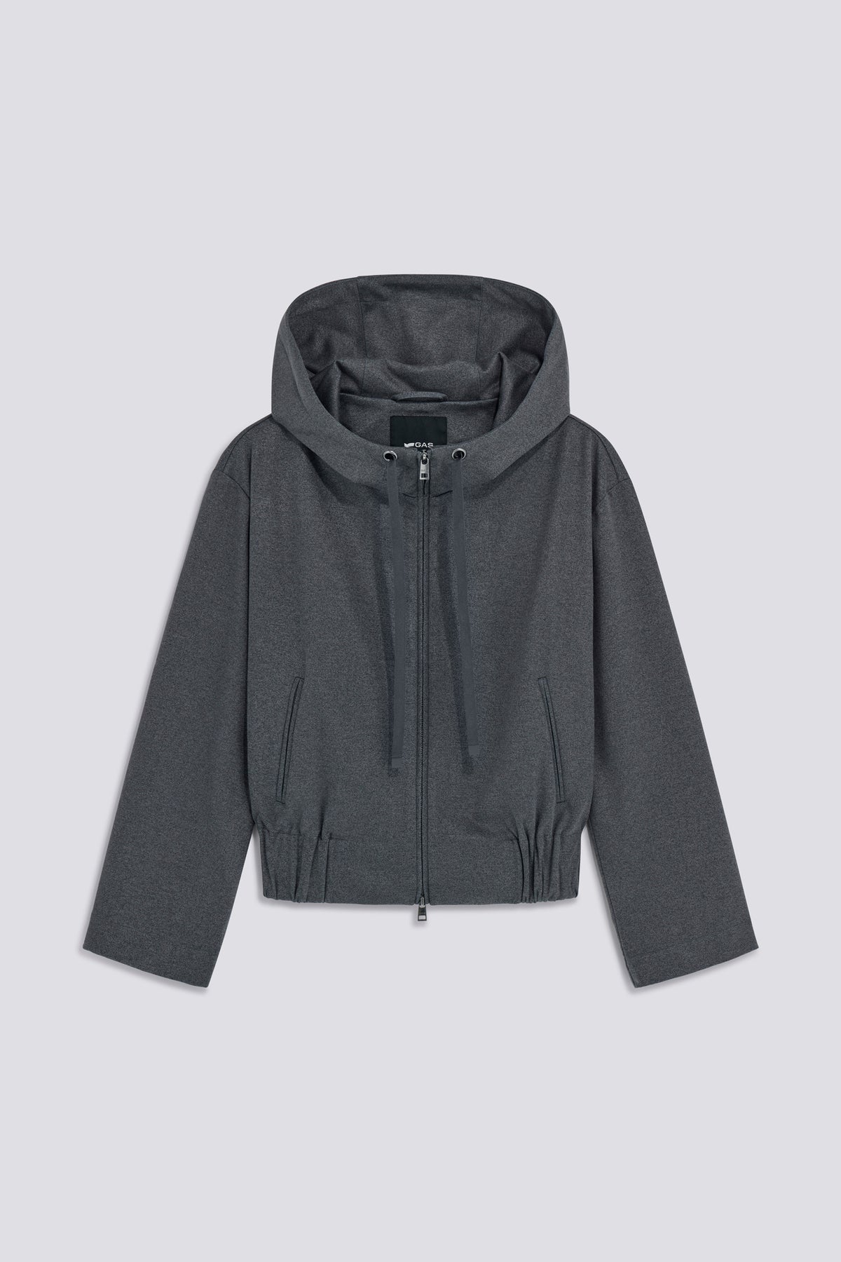 Diese relaxed fit Jacke aus bedrucktem Stretch-Viskose-Jersey vereint den Komfort eines Sweatshirts mit dem anspruchsvollen Look eines urbanen Kleidungsstücks. Die integrierte Kapuze und das elastische Saum sorgen für Praktikabilität, während die fließende Textur des Stoffes Bewegungsfreiheit gewährleistet. Ein perfektes Kleidungsstück für Layering im Winter.