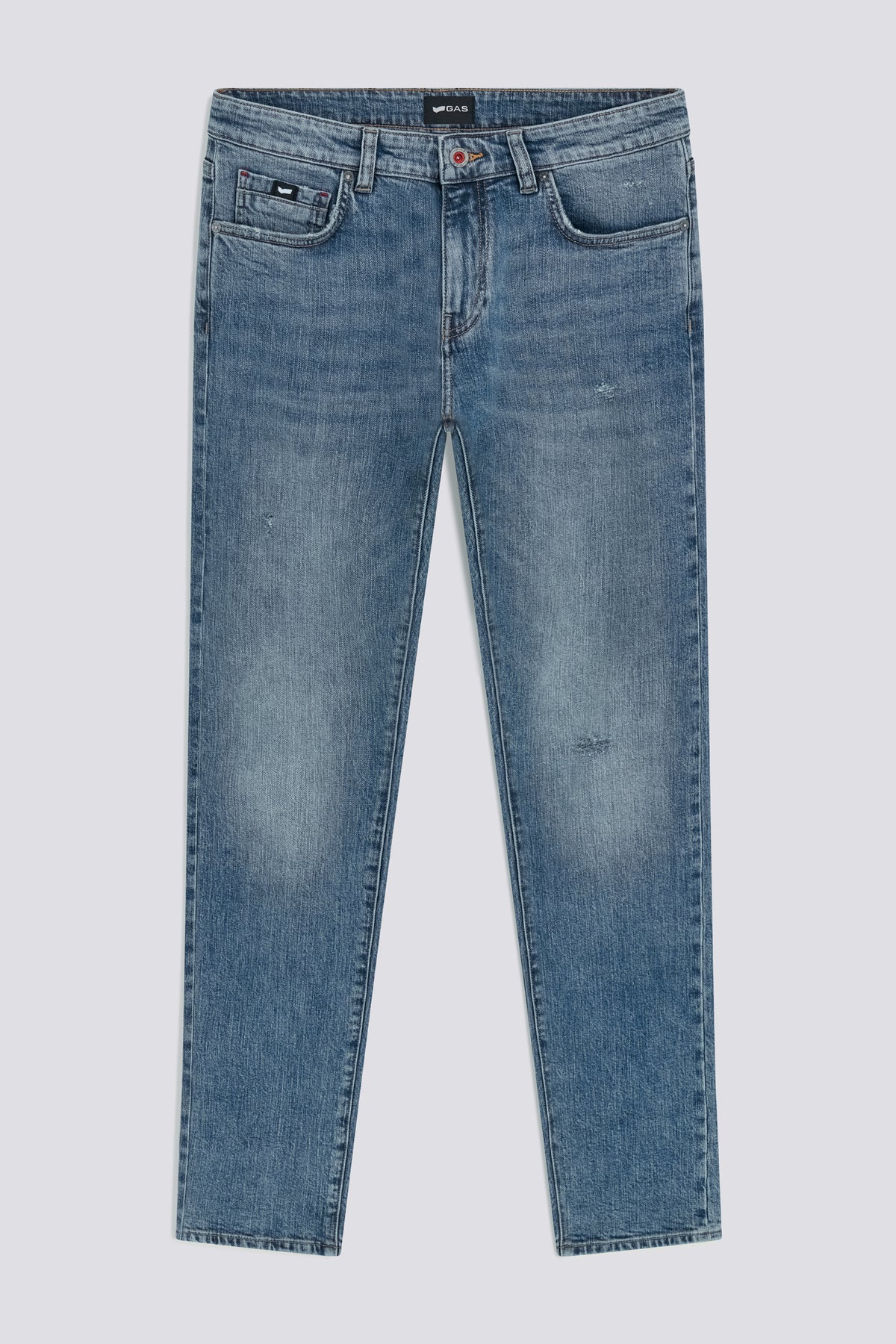 Diese Denim-Slim-Fit-Jeans mit 5 Taschen ist aus einem 12,75 OZ Selvage-Komfortstoff gefertigt, der Struktur und Bewegungsfreiheit vereint. Die mittel/hellen Bimsstein-Waschungen mit leichten Abrasuren verleihen einen getragenen Look. Ein unverzichtbares Kleidungsstück für alle, die ein cleanes, aber raffiniertes Design suchen.