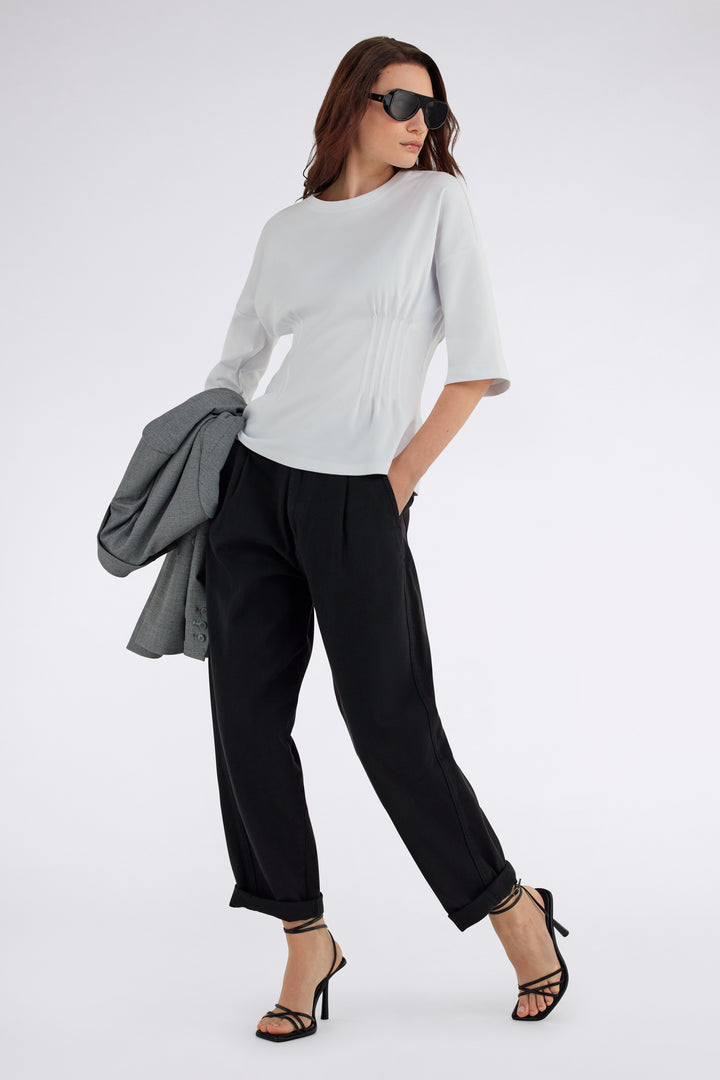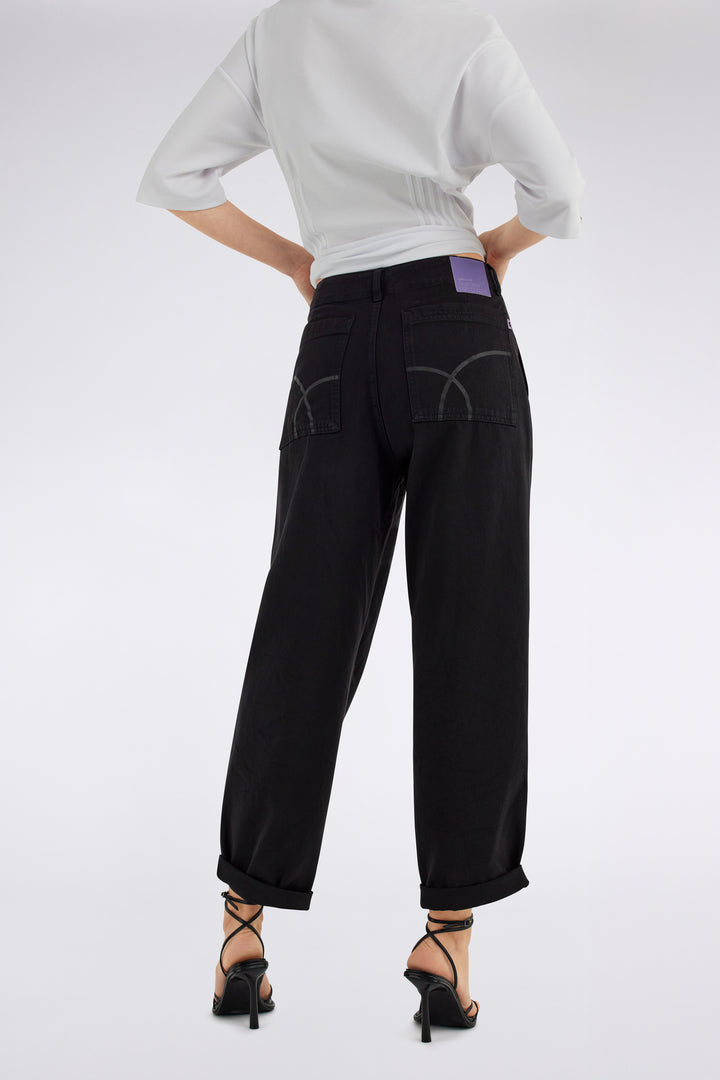 Damenhose im Baggy-Fit, gefertigt aus 9,75 oz stückgefärbtem, festem Bull-Gewebe für einen markanten und zeitgemäßen Look. Perfekt, um den Streetstyle zu verkörpern, lässt sich mühelos mit Oversize-Stücken für ein urbanes Outfit oder mit schmalen Silhouetten für einen coolen und raffinierten Kontrast kombinieren.