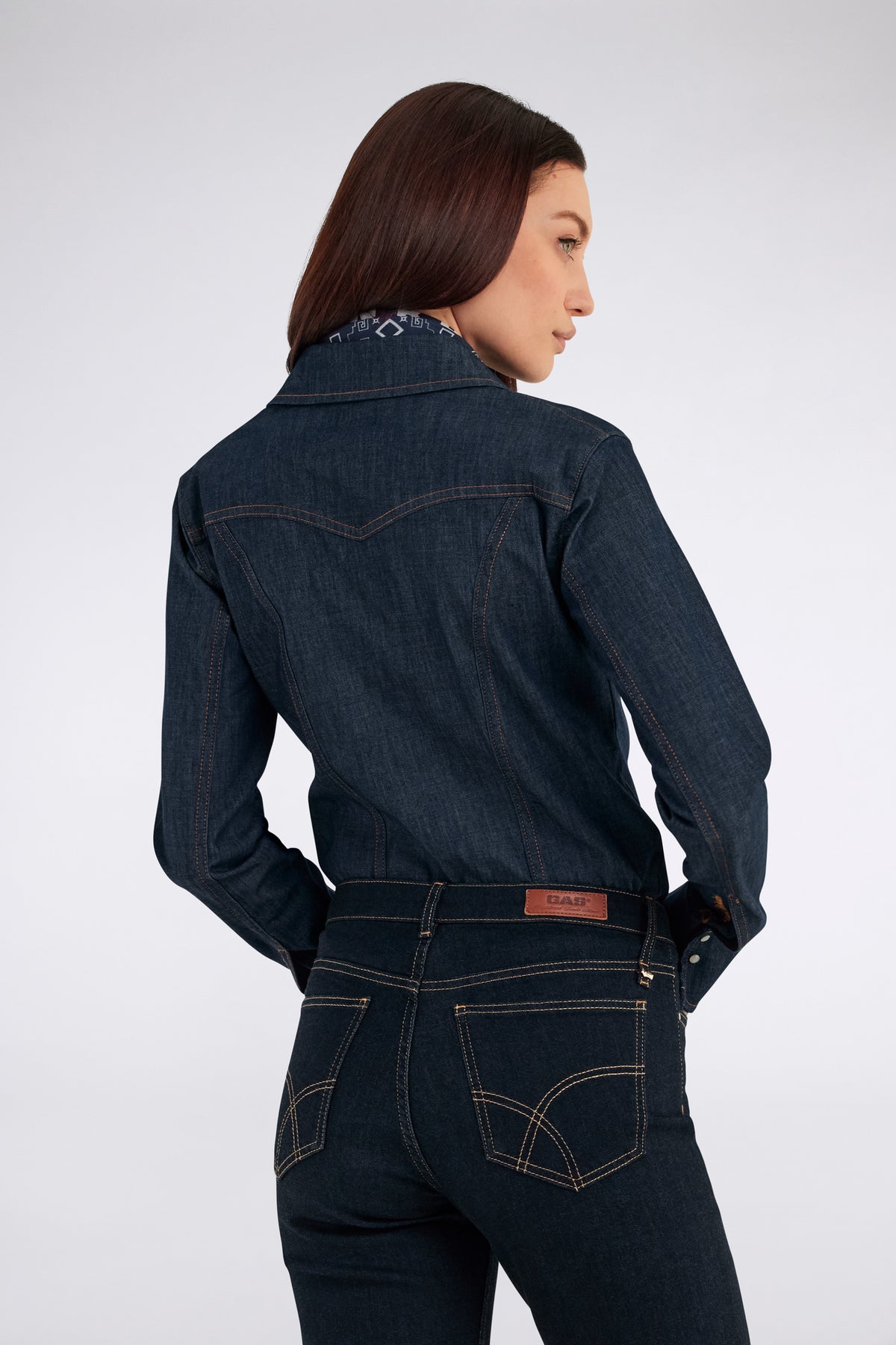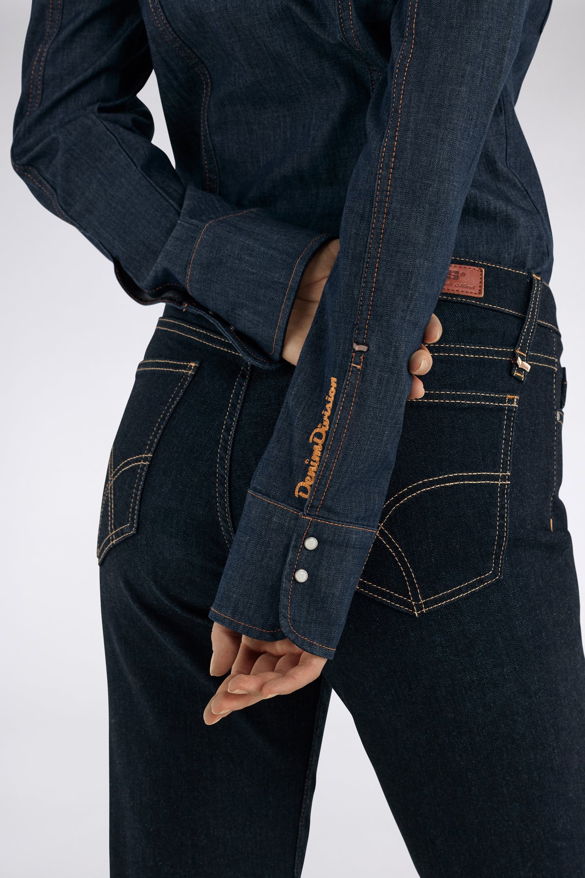 Damen Slim Fit Hemd aus dunkelblauem Denim