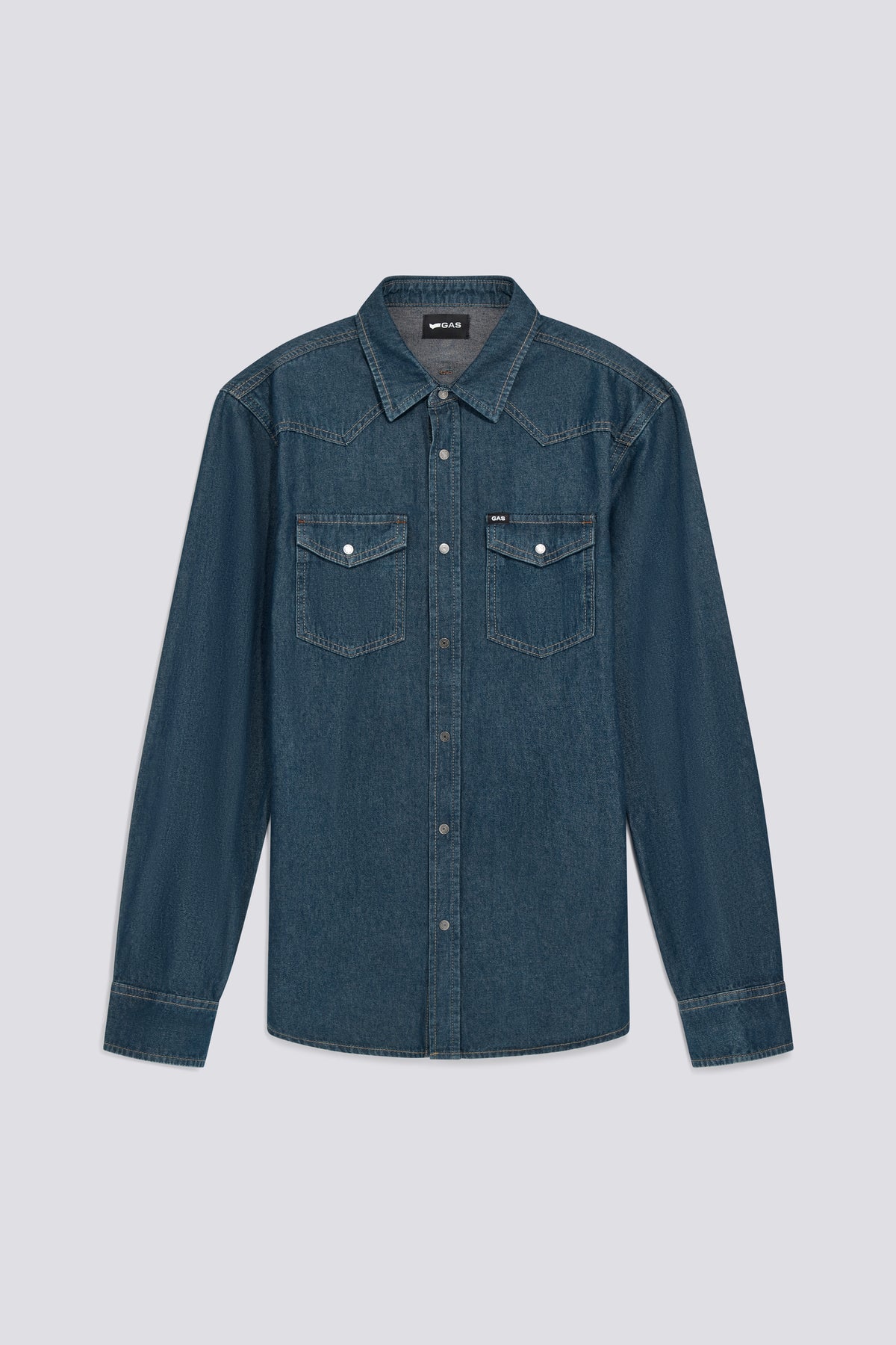 Herrenhemd aus festem indigoblauen Denim, 6,00 OZ, mit Waschung mit dunkelblauen Bimsstein. Ein Klassiker der Herrengarderobe, neu interpretiert mit einer aktuellen Passform, perfekt zu einer Jeans für einen auffälligen Denim-on-Denim-Look zu kombinieren.