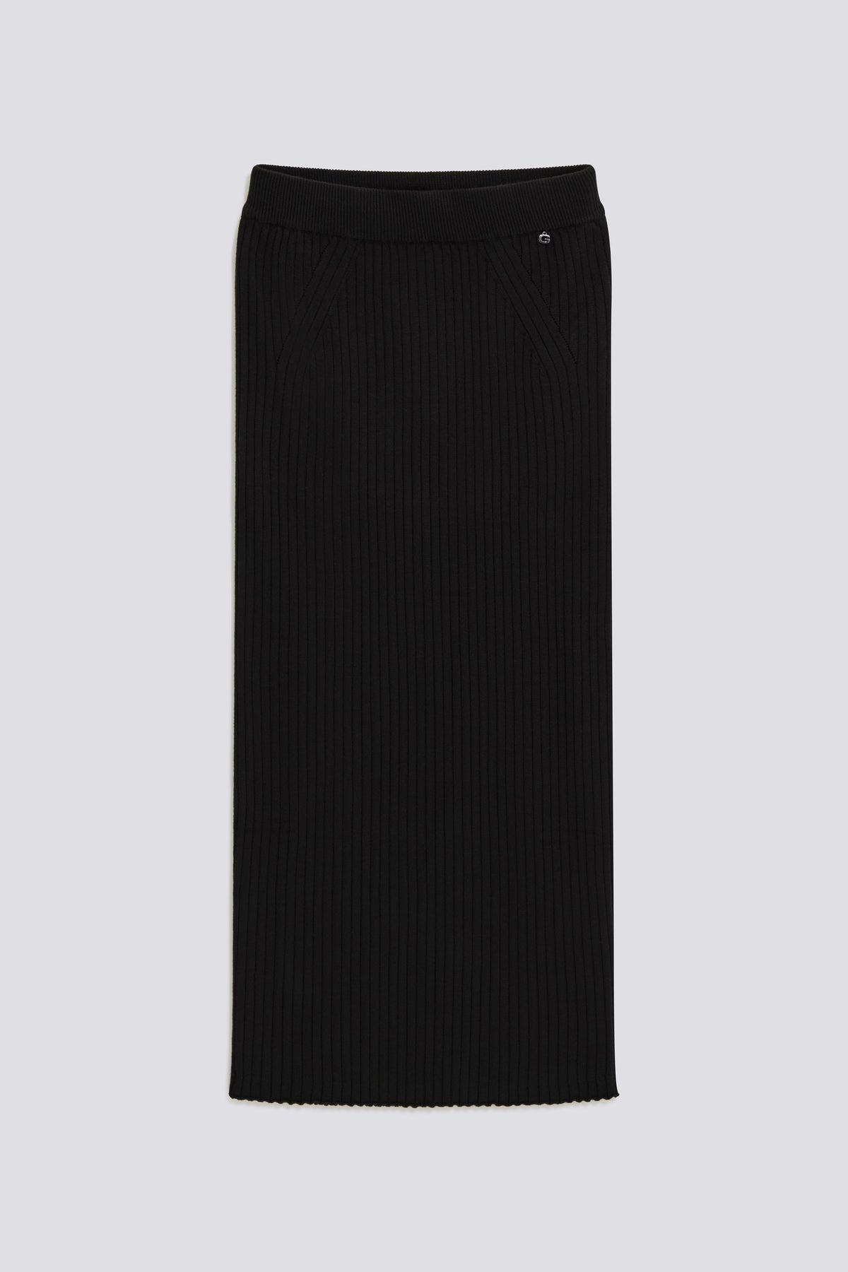 Dieser schmale Longuette-Rock ist aus einem weichen Viskosemischgarn in Feinheit 12 gefertigt, mit einer Rippstruktur, die die Silhouette betont, ohne sie einzuengen. Der elastische Bund sorgt für Komfort und Halt, während die ikonischen Details – die Metall-Logo-Plakette auf der Rückseite und der 'G'-Anhänger auf der Vorderseite – einen unverwechselbaren und femininen Akzent setzen. Perfekt, um sie mit dem passenden Oberteil für einen eleganten und zeitgemäßen Total-Look zu kombinieren.