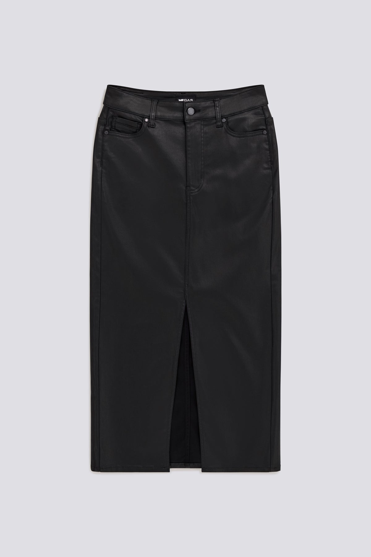 Dieser 10.20 OZ Stretch-Denim-Rock vereint klare Linien und Komfort mit einem Regular-Fit-Schnitt, der die Silhouette betont. Der vordere Schlitz durchbricht die geometrische Form mit einem mutigen und femininen Twist, was ihn perfekt macht, um ihn mit Ankle Boots oder Sneakers zu tragen.