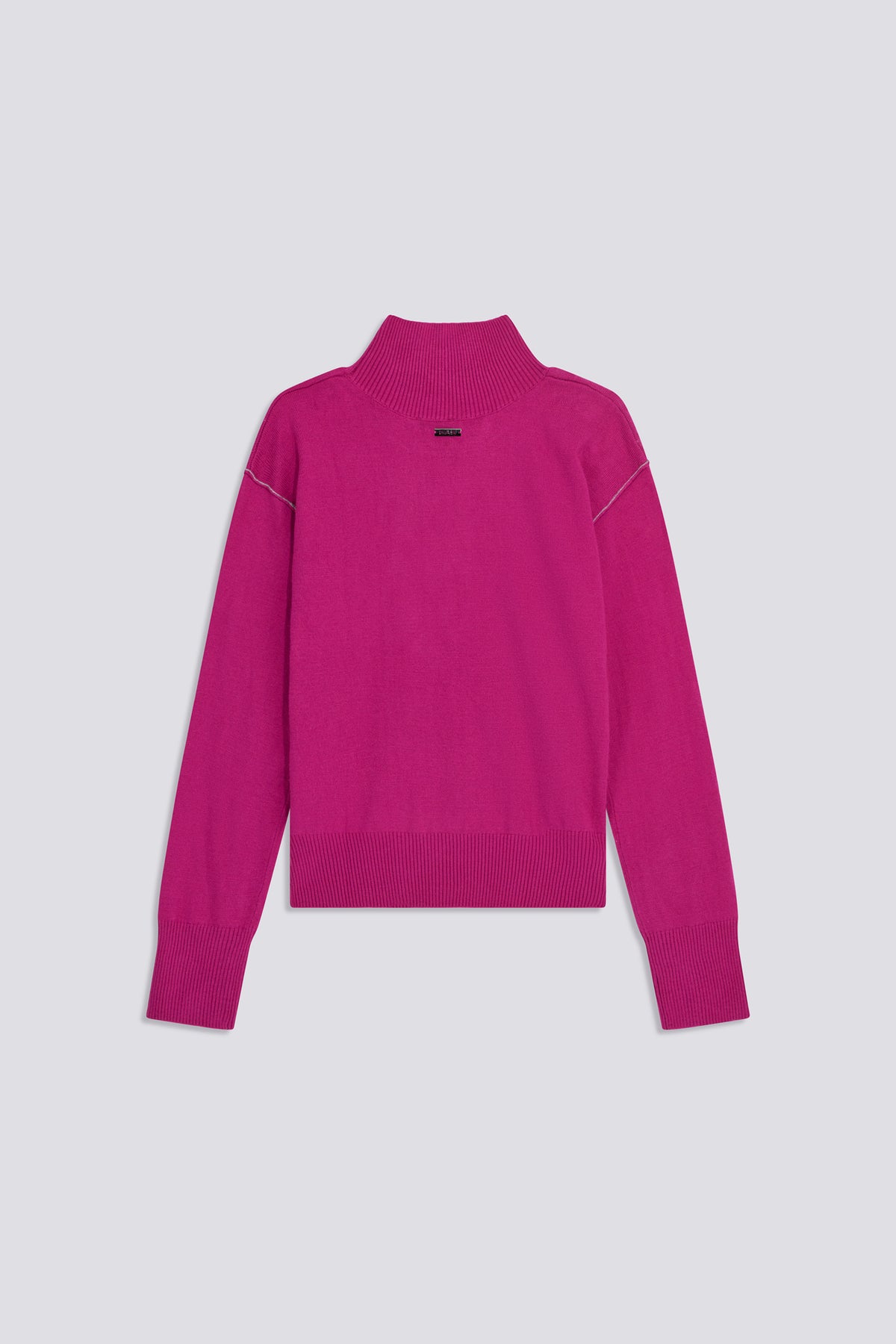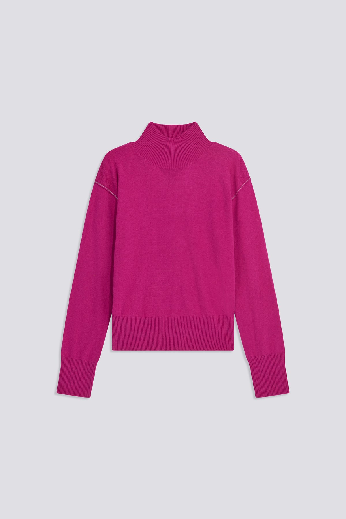 Rollkragenpullover mit entspanntem Schnitt, überschnittener Schulter und Schlitzen an den Seiten und am Ärmelende. Hergestellt aus weichem Cashmere Blend Garn der Feinheit 12, verziert mit kontrastierenden Nähten, einem Metall-Logo-Emblem auf der Rückseite und einem 'G' Anhänger auf der linken Seite. Zu tragen mit ausgestellter Denim oder Tailored Hosen für eine lässige Eleganz.
