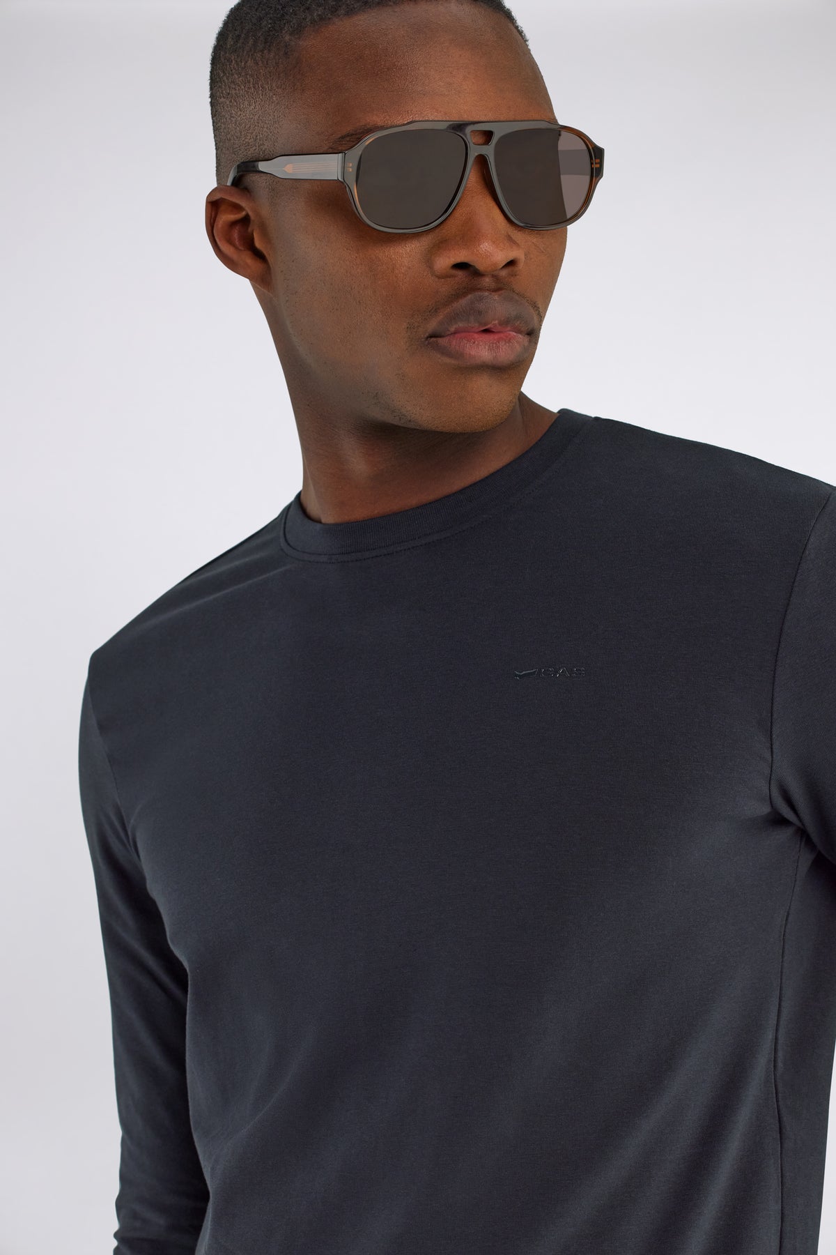 Langarm-Slim-Fit-T-Shirt aus Stretch-Jersey, bereichert durch den glänzenden Ton-in-Ton Logo-Druck auf der linken Brust und dem innenliegenden logierten Schweißschutz für einen charakteristischen und zeitgenössischen Touch.