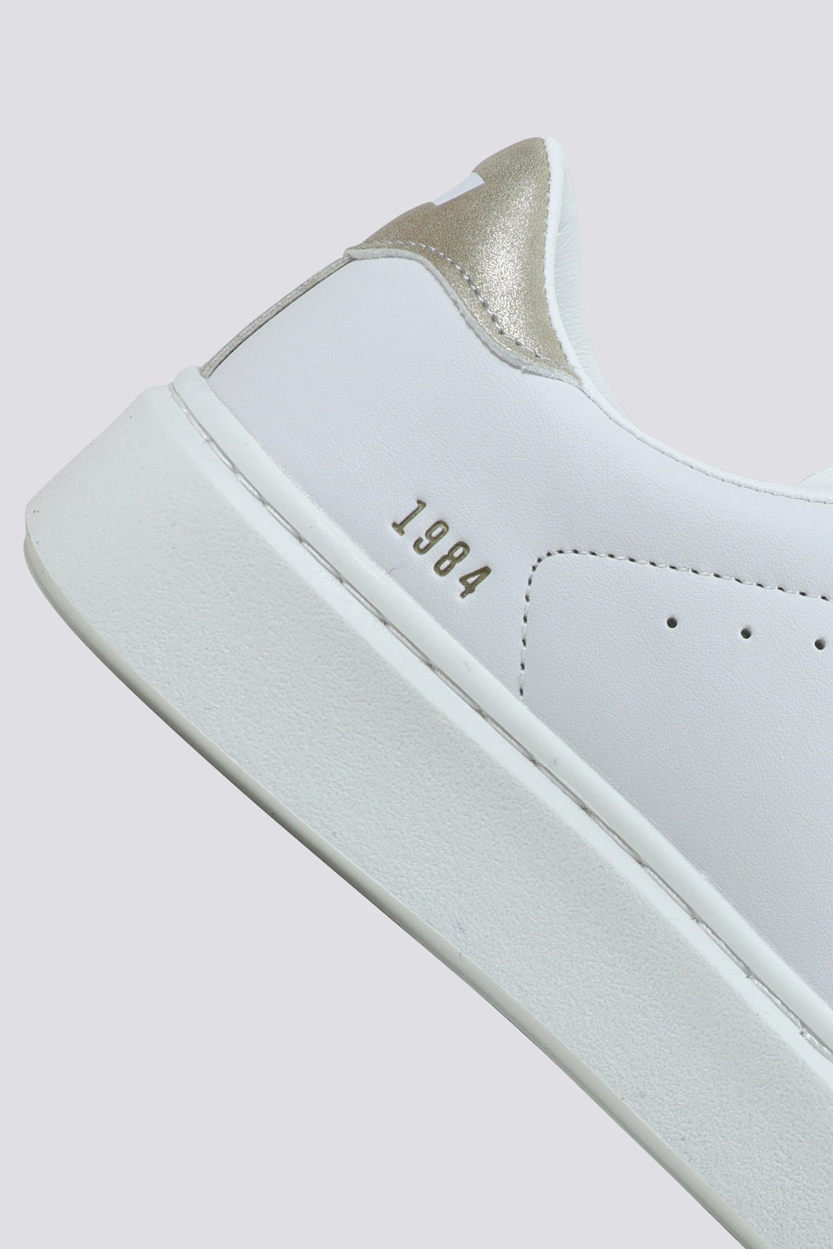 Low-top-Sneaker für Damen mit essentiellem, modernem Design. Das weiße Obermaterial wird durch klare Linien und dezente Details definiert, mit seitlichen Mikroperforationen, die die Oberfläche auflockern. Das GAS-Logo in goldener Ausführung erscheint an der Seite, während die auf der Ferse gedruckte 1984 an die Ursprünge der Marke erinnert. Ein minimalistisches Modell, das Alltagslooks stilvoll ergänzt.