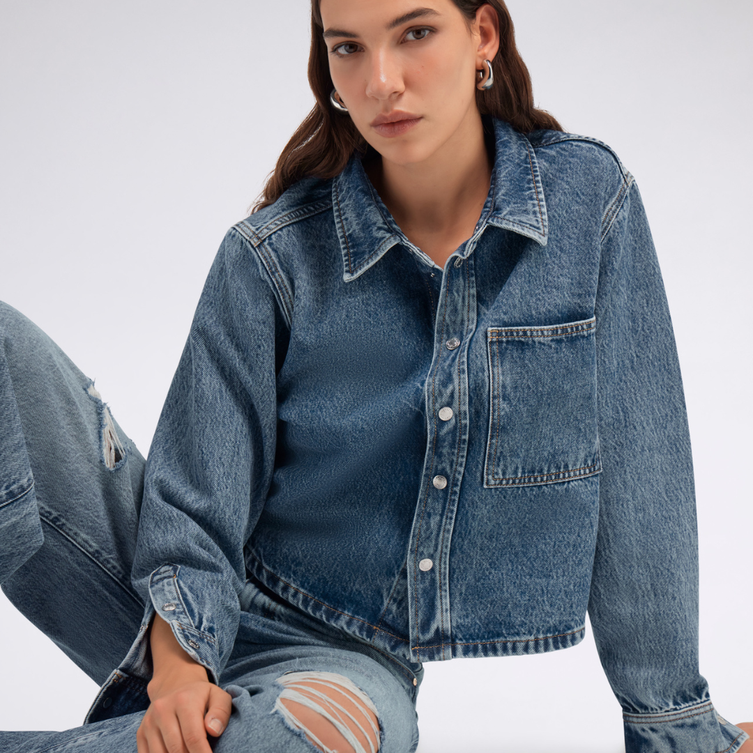 Feminine silhouettes and retro details intertwine with modern proportions, offering versatile pieces that move seamlessly from daywear to night-out. Stone-washed finishes, fluid fabrics, and generous volumes define an authentic yet sophisticated aesthetic, where every jean, jacket, or jumpsuit becomes a style ally, ready to adapt to any occasion.