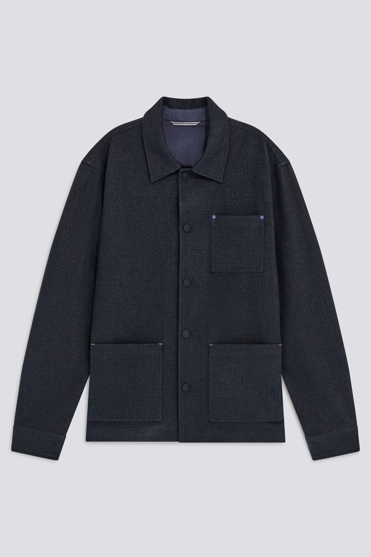 This men's jacket in viscose blend printed jersey is the right choice for those who want a clean yet characterful style. The shirt collar and front pockets inspired by workwear give it a sharp look, while the chambray internal details provide a bold twist. Wear it open over a T-shirt or buttoned up with dark denim.