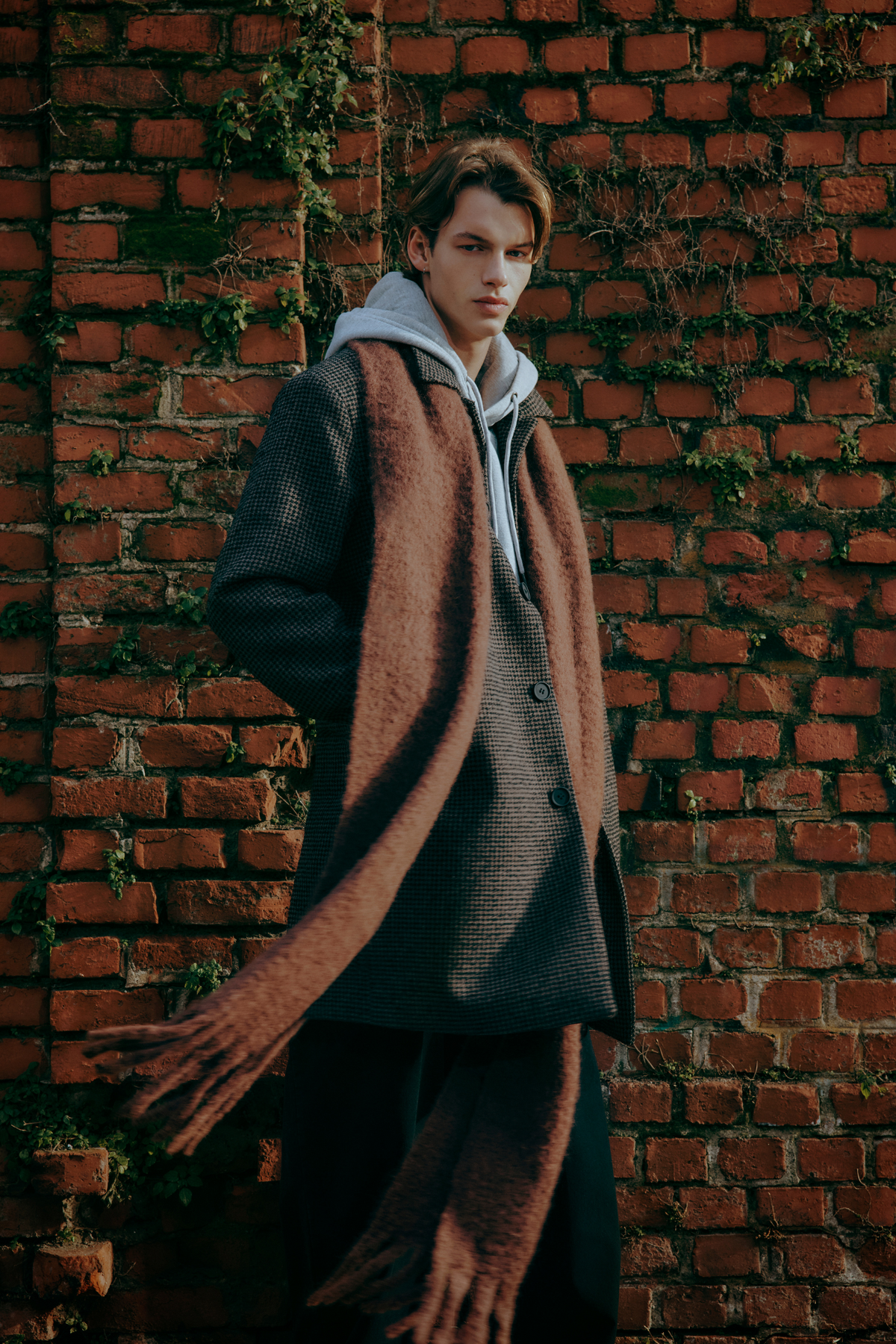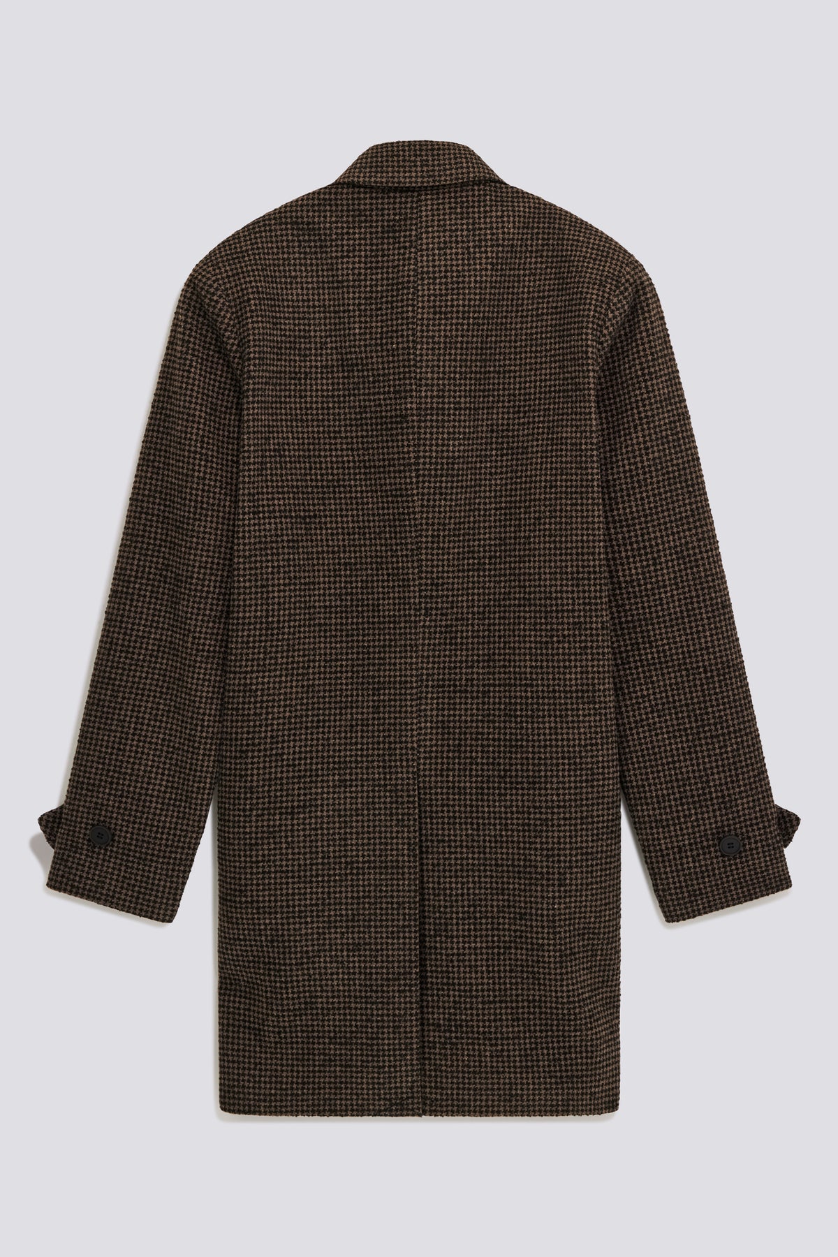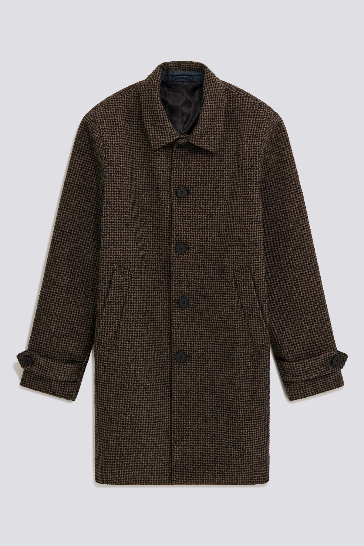 A timeless classic reimagined with a contemporary twist. This men's coat, lined and with a regular fit, is made of houndstooth fabric with a sophisticated and timeless appeal. The chambray lining applied to the collar adds an unexpected detail that breaks the formality. A versatile outerwear piece, perfect for completing both formal looks and more casual outfits with a tailored touch.