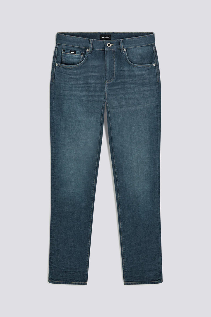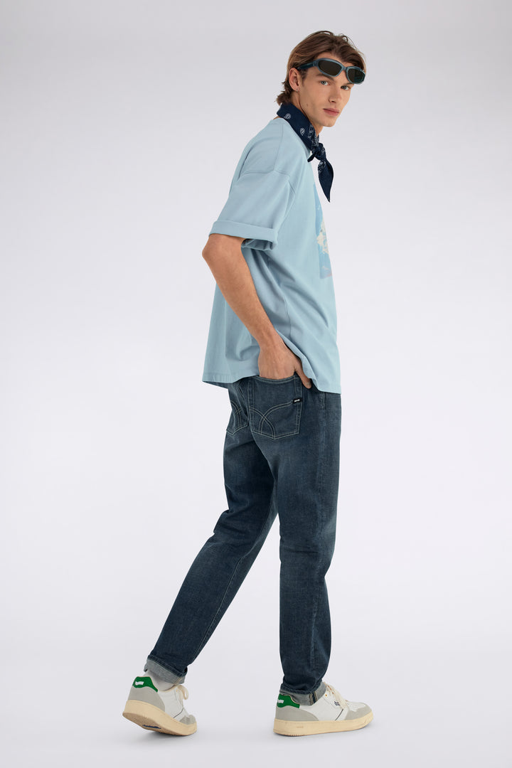 Slim-fit men's jeans that blend style and innovation, designed for those seeking a unique denim design with a flawless fit. Made from 12.50 OZ comfort fabric with a distinctive cast, they provide both softness and durability. The special stone wash enhances the depth of color and gives an authentic look. A standout feature: the 6th pocket, strategically placed inside the right back pocket, adding a functional and exclusive touch.