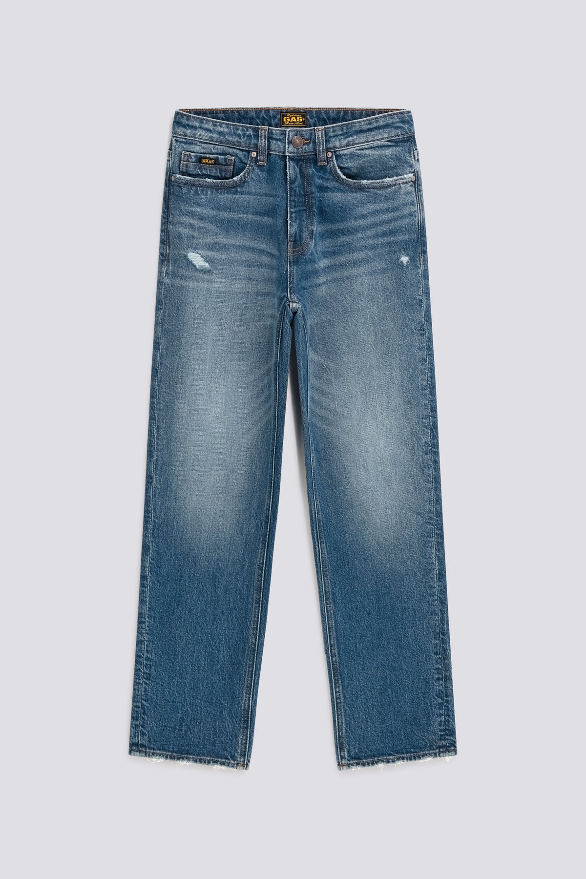 - Medium blue wash with distressing on the pockets