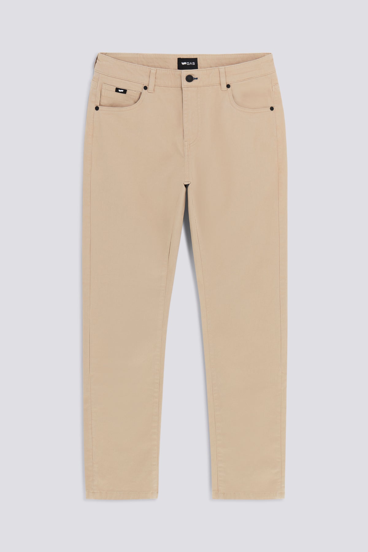 This slim fit 5-pocket pant is made from stretch cotton gabardine, compact and comfortable. The exterior is enhanced by black rubber details that add a technical and contemporary twist to the design. A versatile piece, perfect for completing urban looks with a bold character.