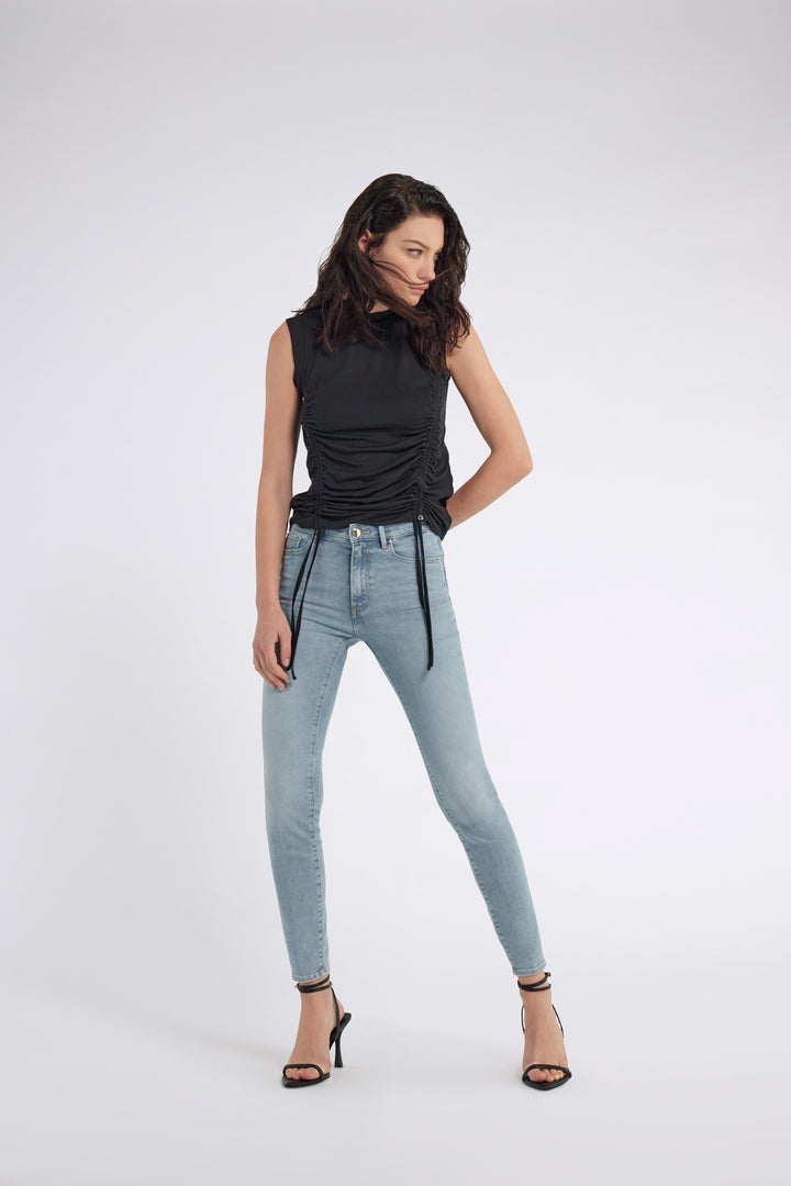 Elegance and performance merge in our high-waisted, 5-pocket skinny jeans. Crafted from 9.40 OZ premium perform fabric, these jeans offer exceptional elasticity and lightness, ideal for those who desire comfort without sacrificing style. Their fit is designed to enhance every silhouette, making them an indispensable item in any contemporary wardrobe.