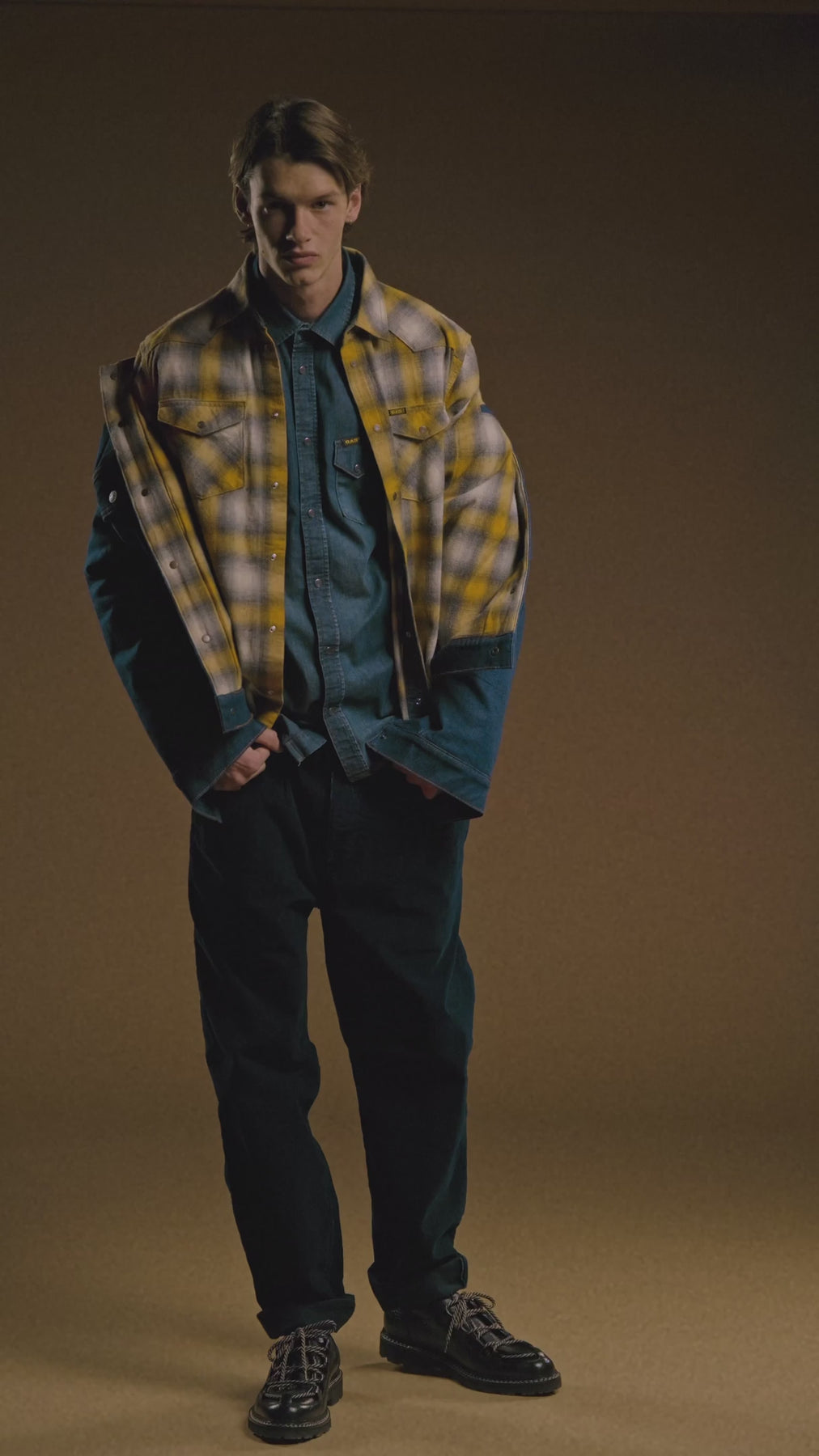 This men's long-sleeve shirt is made from warm-hand yarn-dyed plaid cotton, with a regular fit and western-inspired details. Perfect for tackling the season with style and character, it's ideal to pair with dark denim or cargo pants for an authentic and relaxed look.