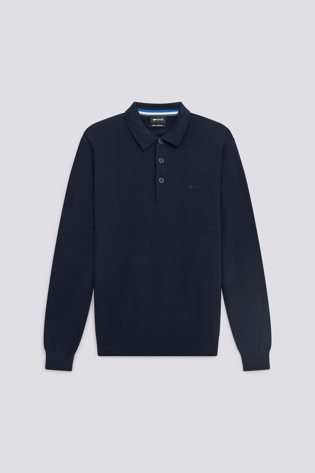Men's slim fit knitted polo in soft cotton-cashmere blend, embellished with GAS embroidery on the heart side. A refined winter essential, perfect on its own or under a jacket.
