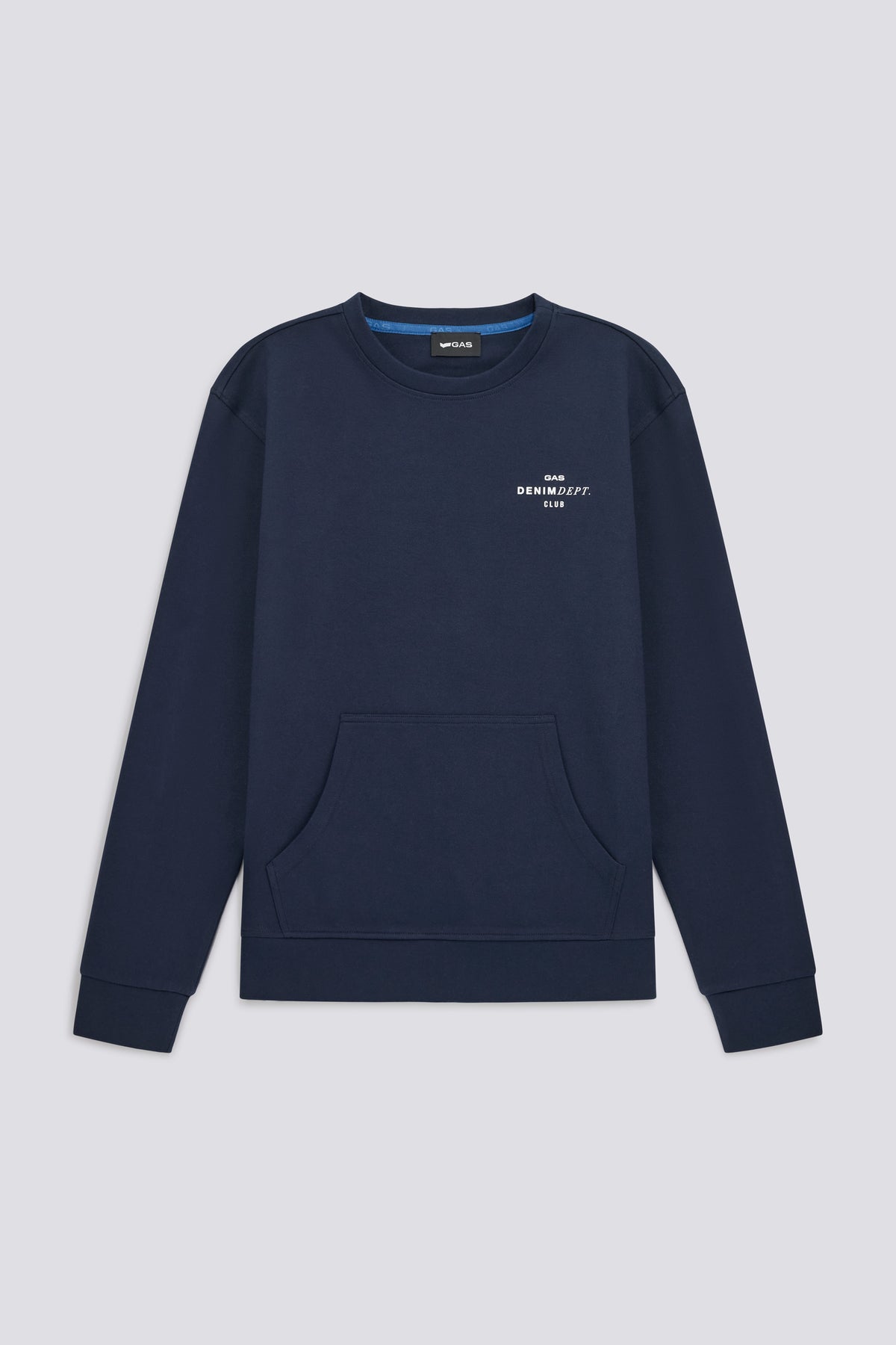 Men's crew-neck sweatshirt with regular fit in cotton-blend interlock fabric, featuring a utility touch with a kangaroo pocket. The contrasting embossed logo on the chest adds character to the clean design, while the branded sweatband finishes the interior of the garment. Perfect to pair with cargo pants or joggers for a bold and contemporary daily look.