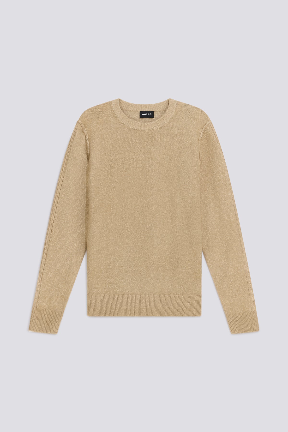 Men's crewneck sweater regular fit in soft wool blend yarn fineness 7, featuring an original two-tone vanisé effect between exterior and interior and exposed seams on the armhole. The logo detail applied to the hem adds an authentic touch to an essential yet distinctive garment, perfect for pairing with denim or chinos for a casual yet refined look.