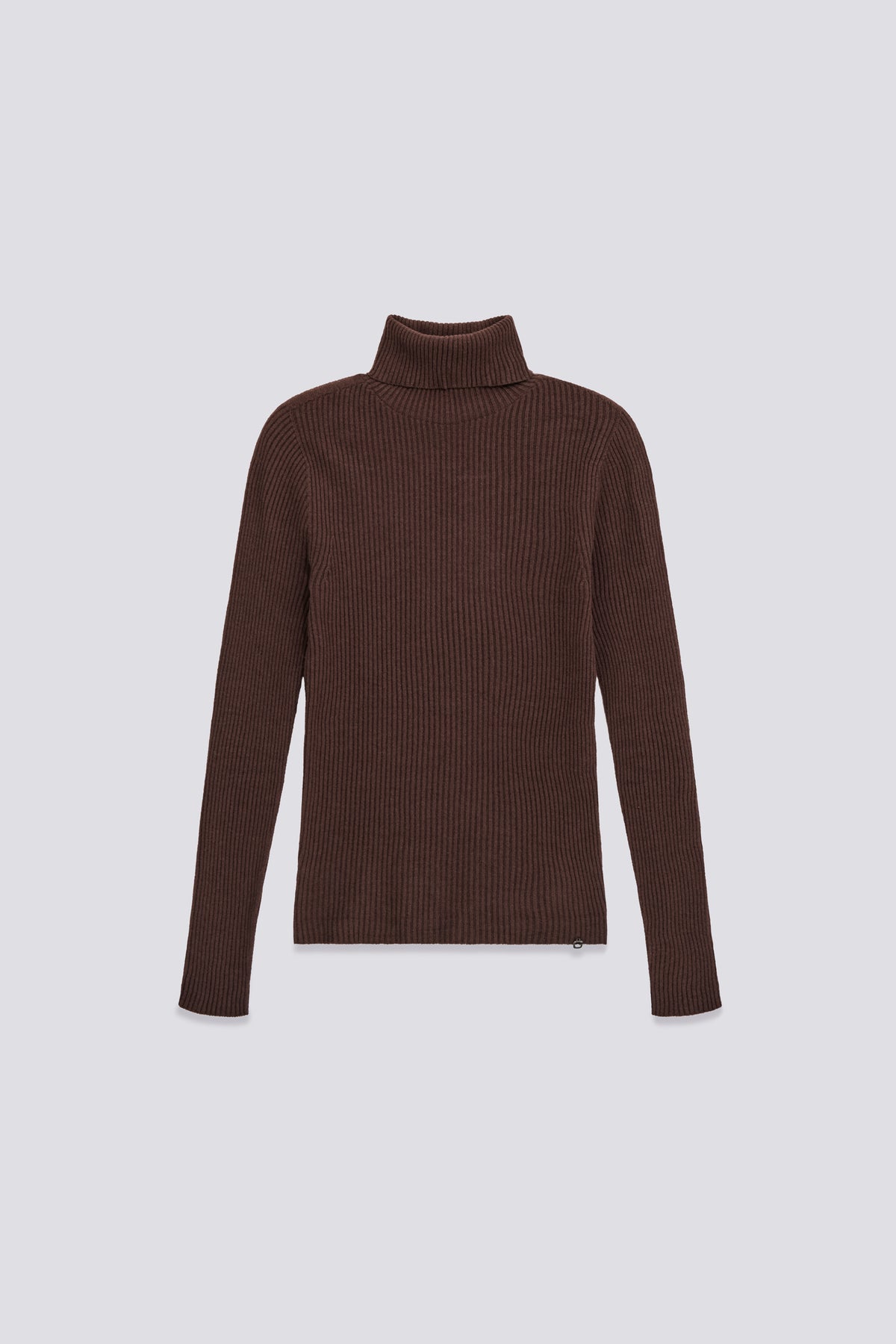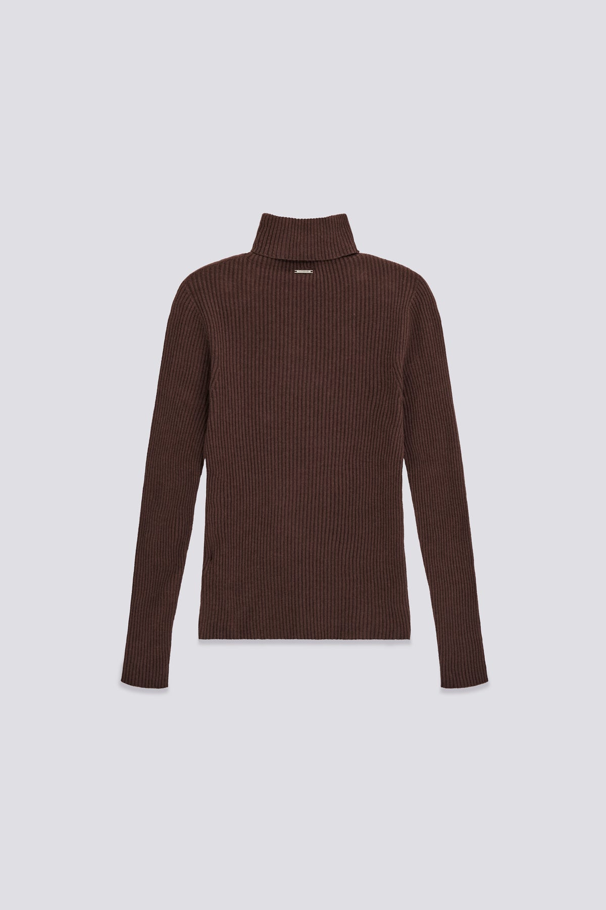 High neck slim fit ribbed sweater, crafted with seamless technology for a comfortable, seamless feel and perfectly defined silhouette. The 14-gauge fine viscose blend yarn makes it soft and lightweight, perfect on its own or under a blazer. Iconic details like the metal plate on the back and the 'G' charm on the side add a distinctive touch. Essential and versatile: pair with midi skirts or high-waisted denim for a cool and feminine look.