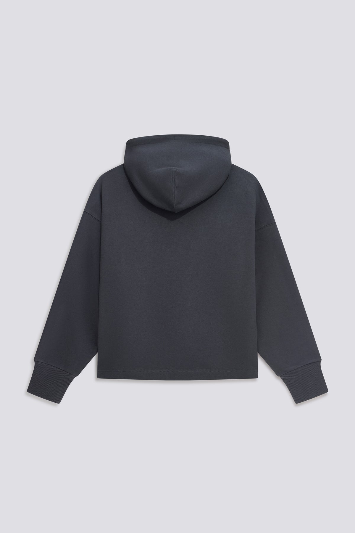 Women's hoodie with straight hem, comfort fit, made from internally brushed fleece for a soft and enveloping effect. The front print gives a graphic twist to the look, while the rainbow logo plaque at the hem adds an iconic detail. Perfect for your daily looks, paired with joggers or tailored pants for a more defined contrast.