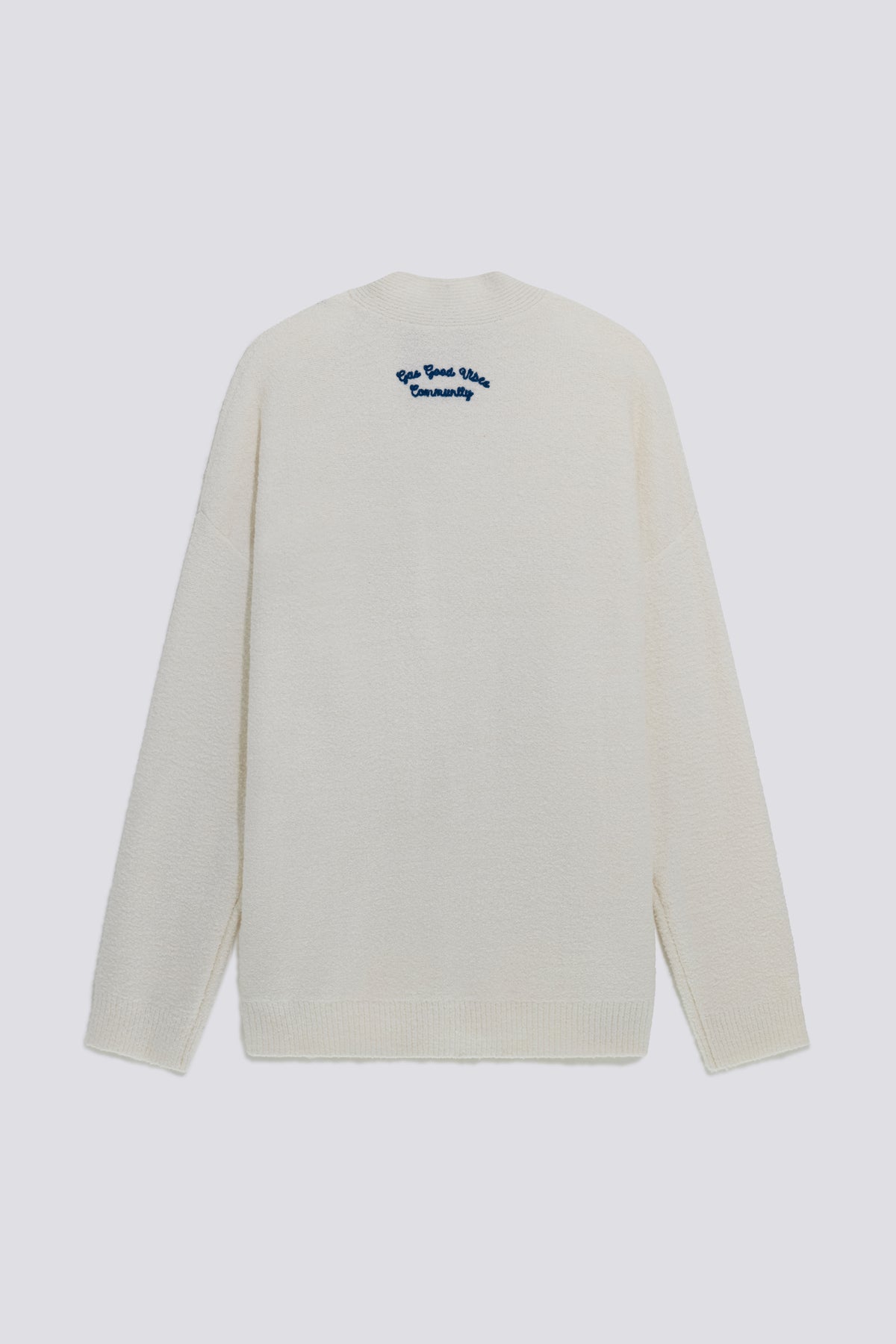 Overfit cardigan in reverse knit cotton bouclé blend, featuring raised pattern on the sides that adds movement and character to the look. A cozy yet refined garment, perfect to pair with wide-leg pants or a midi skirt for a cool and contemporary play of volumes.