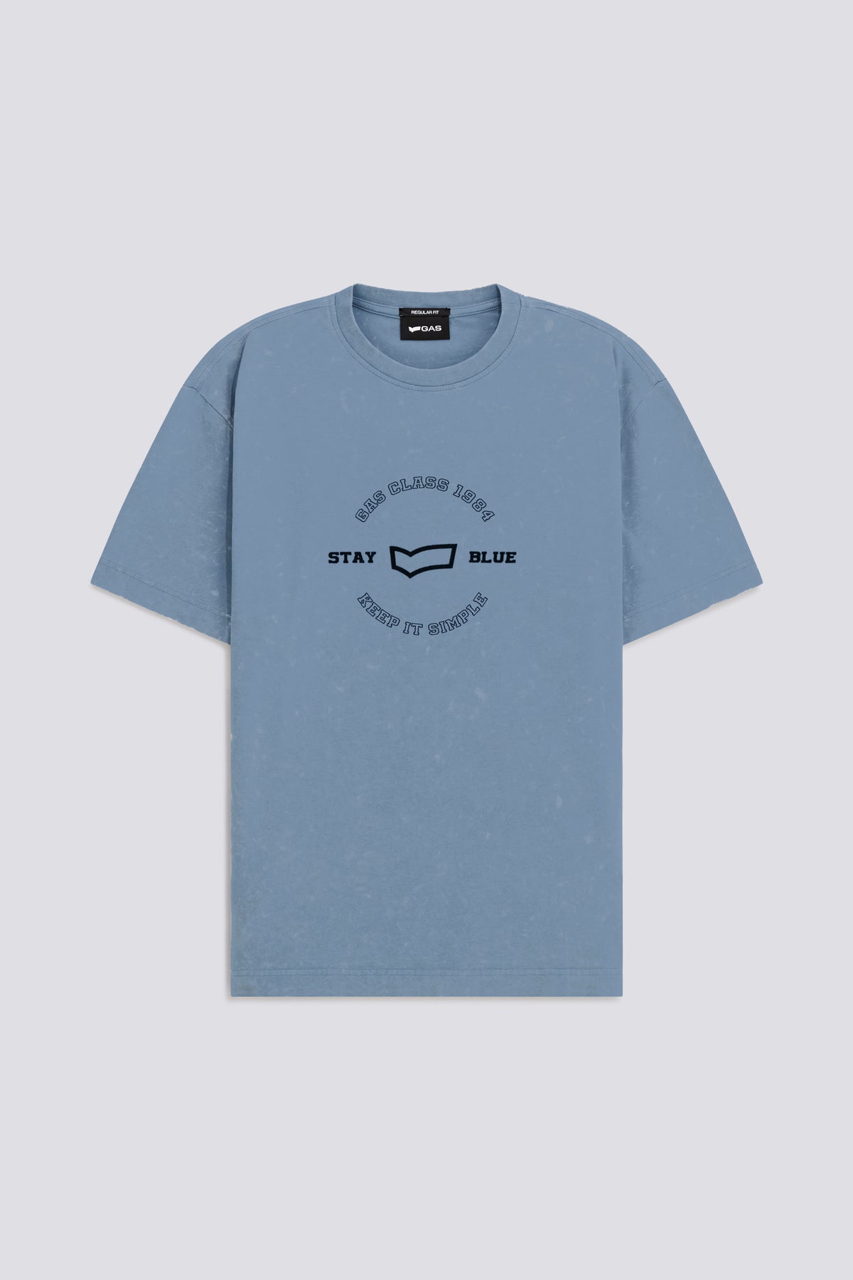 Men's short sleeve T-shirt, regular fit, in stretch cotton jersey. The flock print with water-based details and the vintage look wash give it a lived-in and authentic allure, perfect for a casual style.
