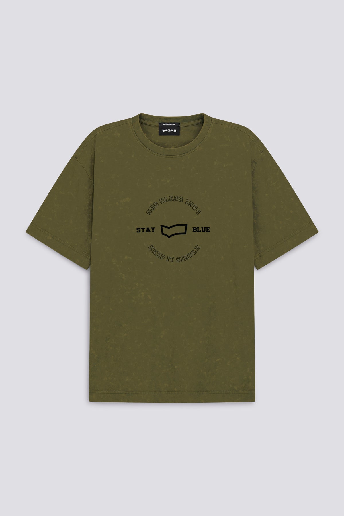 Men's short-sleeved T-shirt, regular fit, made of stretch cotton jersey. The flock print with water-based details and vintage-look wash gives it a lived-in and authentic allure, perfect for a casual style.
