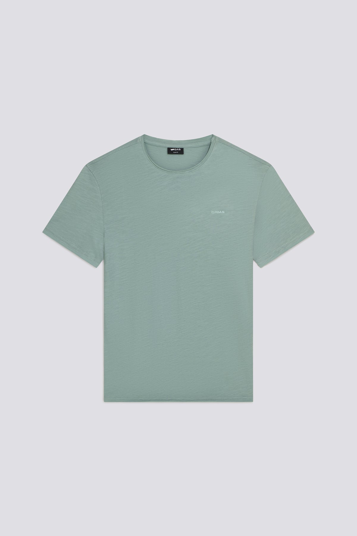 Men's slim fit short-sleeve t-shirt. Made from 100% cotton slub jersey, it stands out for its slightly irregular texture and raw-cut edges, giving it an authentic look. The tone-on-tone logo embroidery on the chest makes it an essential to wear on its own or layered under lightweight shirts.