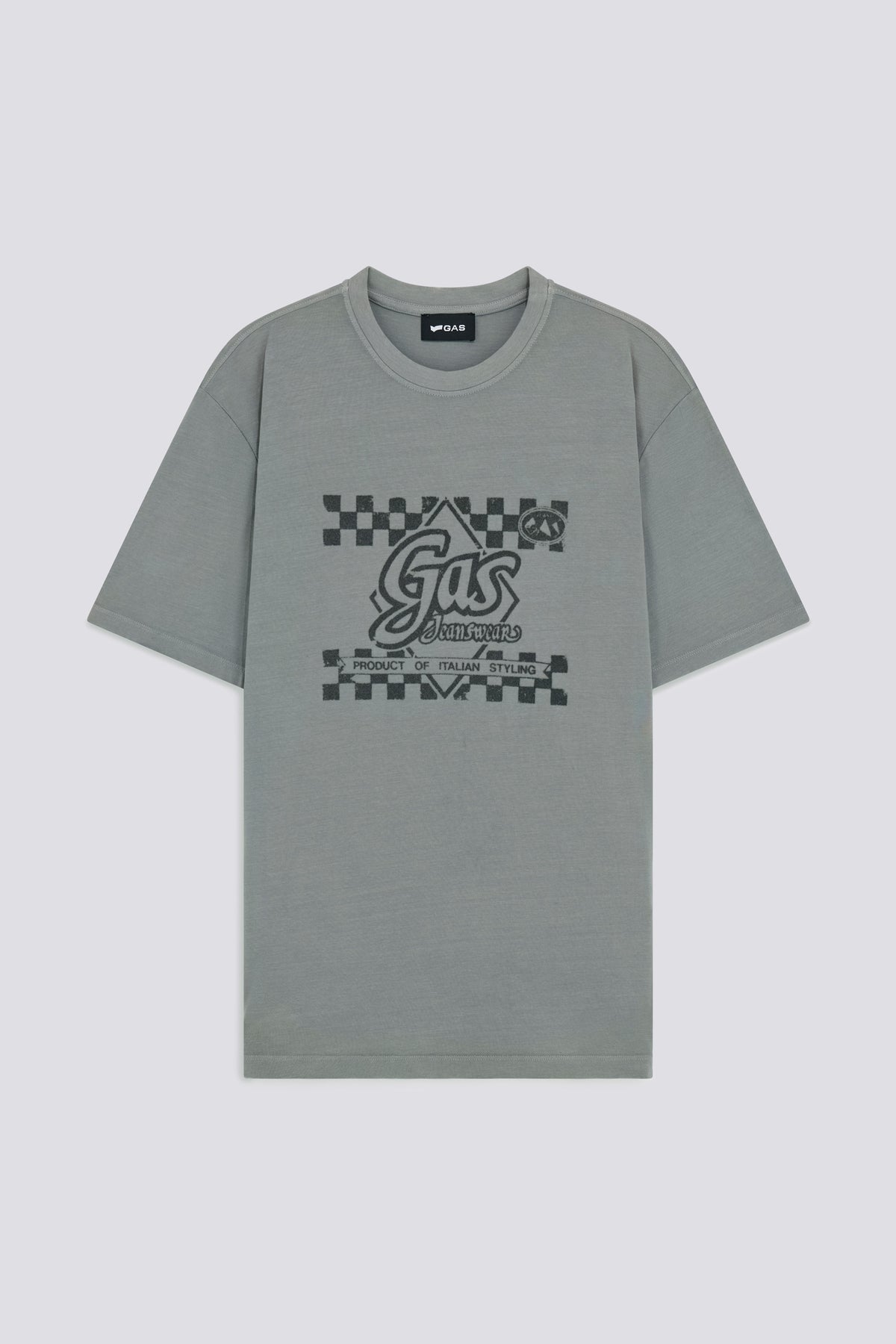 Regular fit short sleeve cotton jersey T-shirt featuring "Italian Styling" flock print and vintage effect treatment. A tribute to authentic style, merging heritage with a cool attitude.