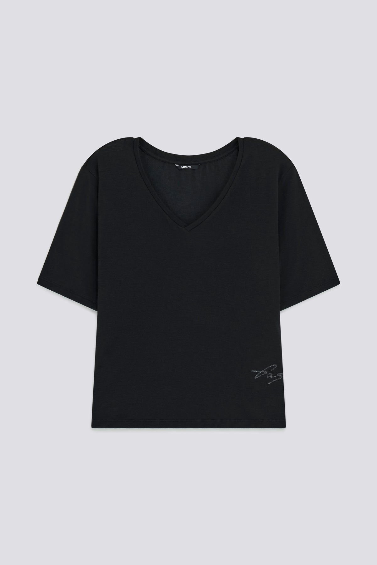Comfort fit T-shirt in warm-hand jersey, featuring a V-neckline and bright details that make a difference. The glitter logo at the hem and the metallic G on the back add a bold feminine twist.