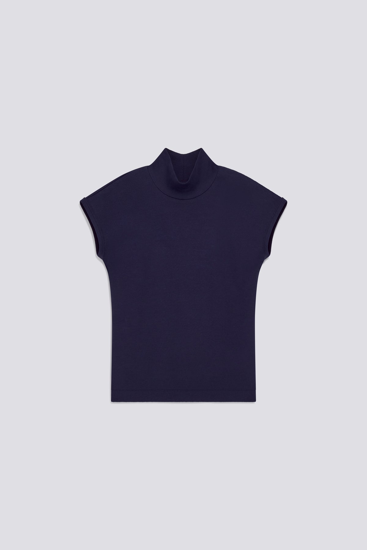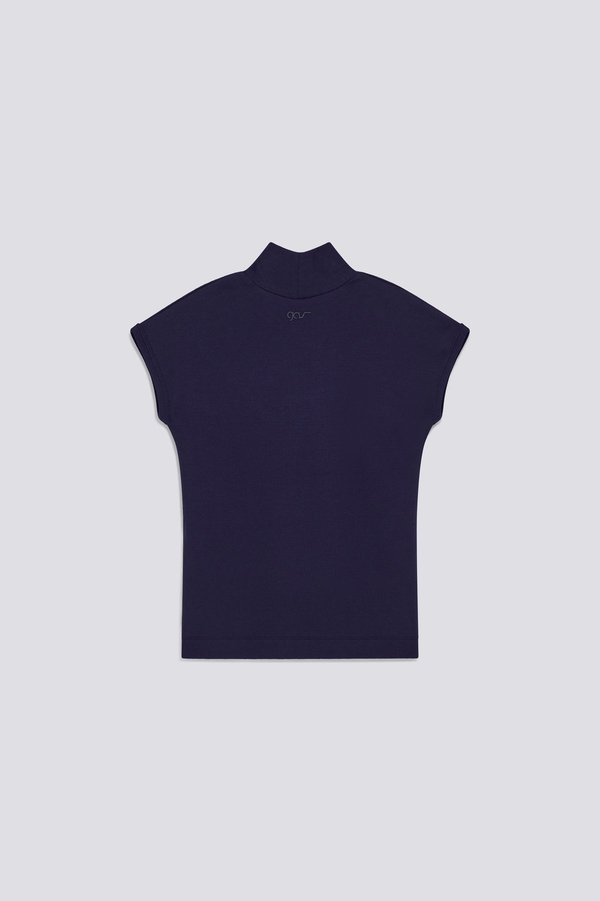 Women's slim-fit T-shirt with mock neck and cap sleeves, made of stretch cotton rib. The streamlined silhouette features a tone-on-tone raised logo print at the back of the neck. An essential top with a bold character, ideal for creating minimal and contemporary looks with sophisticated elegance.