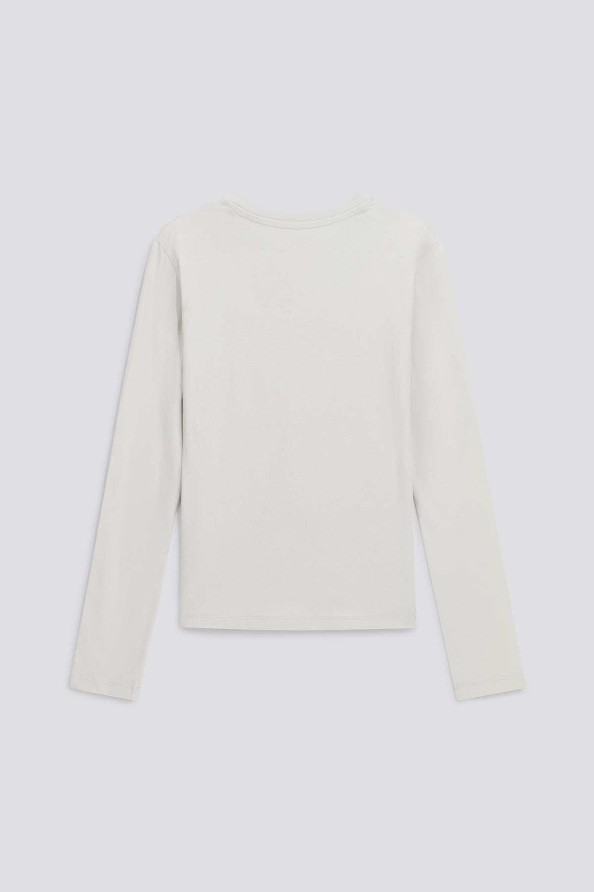 Women's long sleeve slim fit T-shirt, made from stretch cotton jersey for comfort that follows the body's lines. The front is enhanced by a glossy tone-on-tone embossed print, a subtle yet impactful detail. The look is completed with a logo plaque applied at the front hem. Perfect on its own or under blazers and jackets for essential yet cool layering.