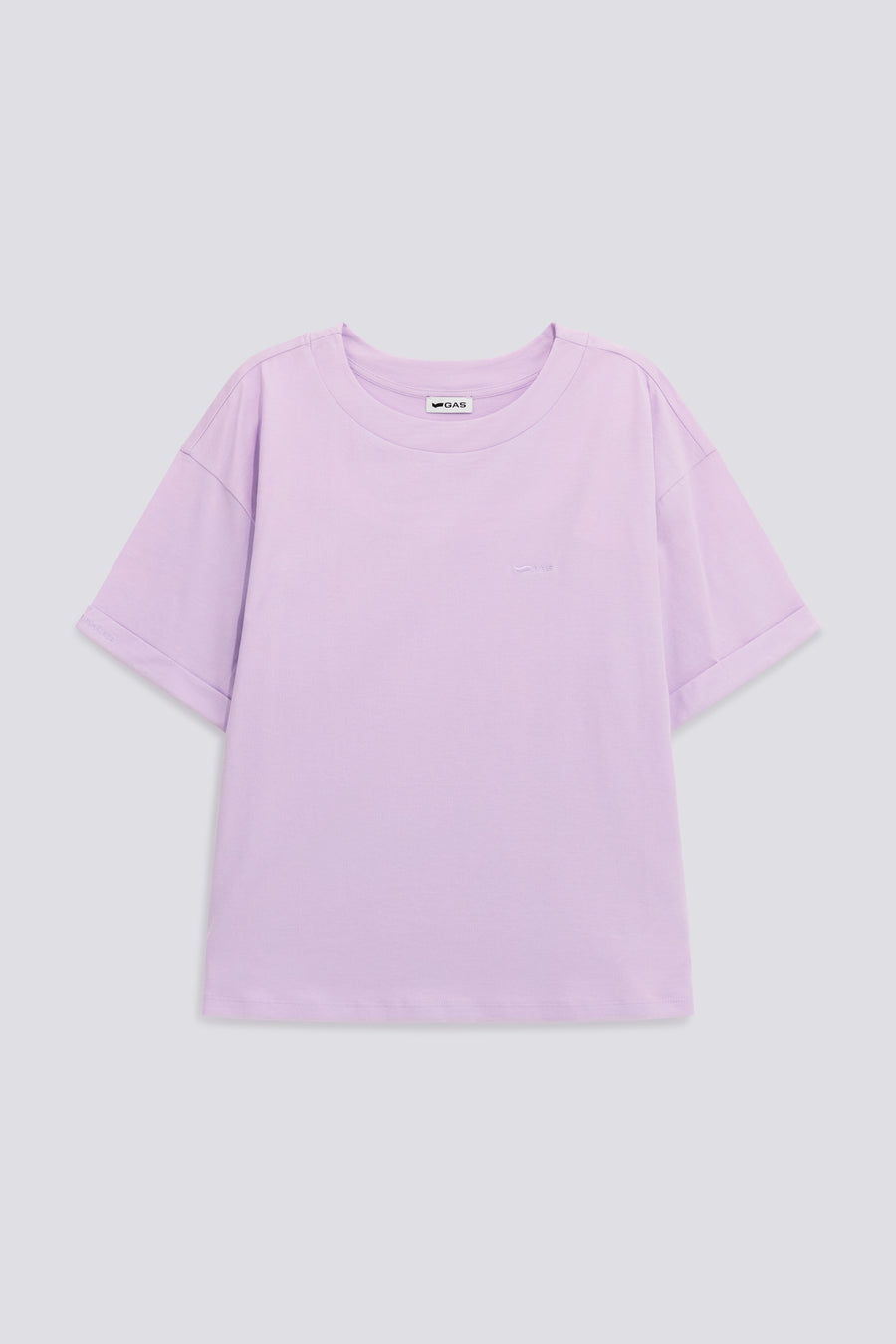 Women's comfort fit T-shirt, a seasonal wardrobe essential. Made from 100% cotton jersey, it offers a relaxed fit and an effortless touch of style. The short sleeves with fixed rolled hem add a refined detail, while the tonal GAS heart logo embroidery and the tonal embroidery on the sleeve hem enhance Gas's signature aesthetic. Perfect to pair with denim for a casual-chic look or under a blazer for a more sophisticated twist.