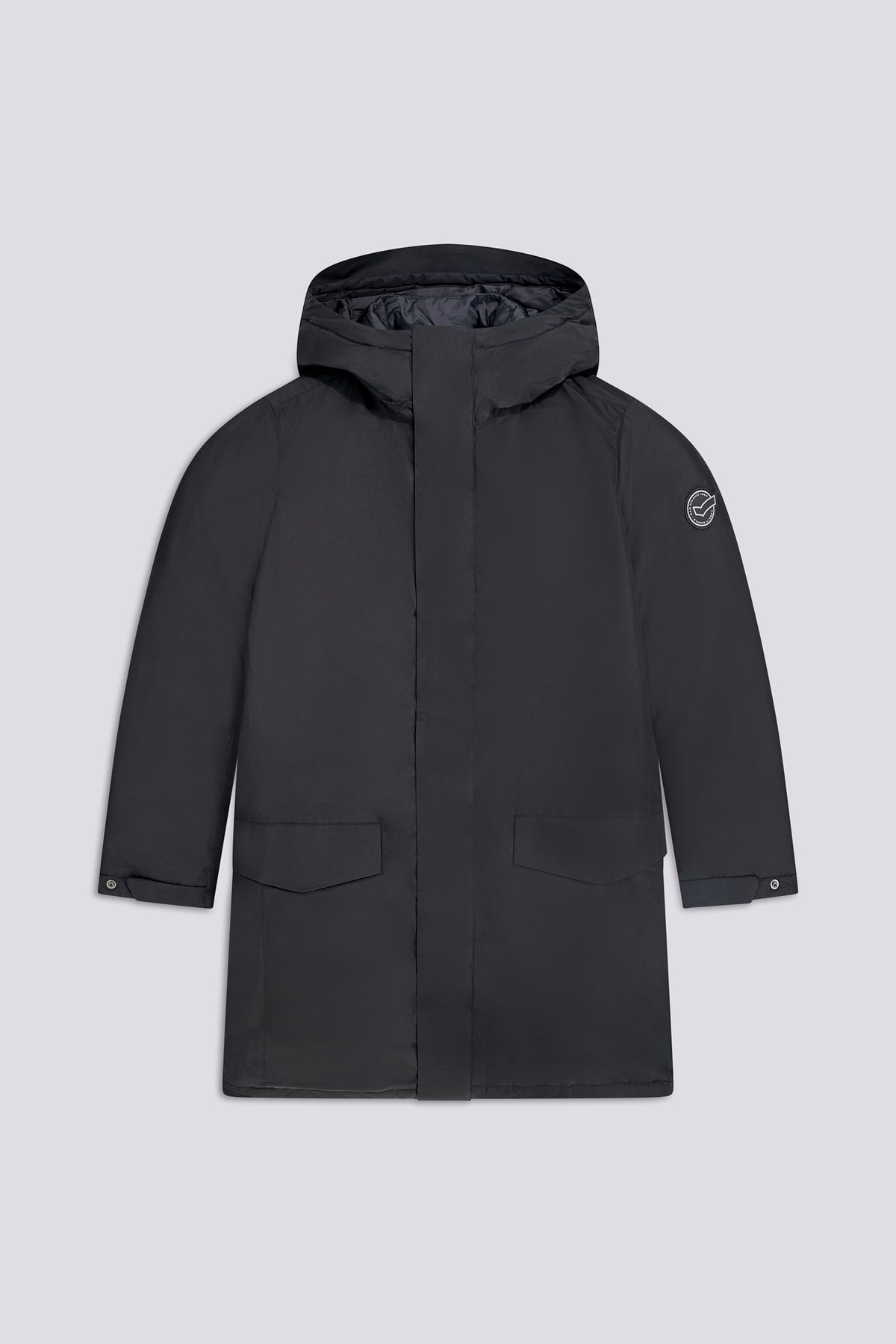 Designed to tackle the colder months with style and functionality. This women's padded jacket, in a regular fit, features a snug hood, practical front closure, and dual applied pockets. The eco feather padding ensures thermal comfort without compromising on lightness. The adjustable cuff and logo patch on the left sleeve add a technical and distinctive touch, perfect for completing a winter look with an urban flavor.