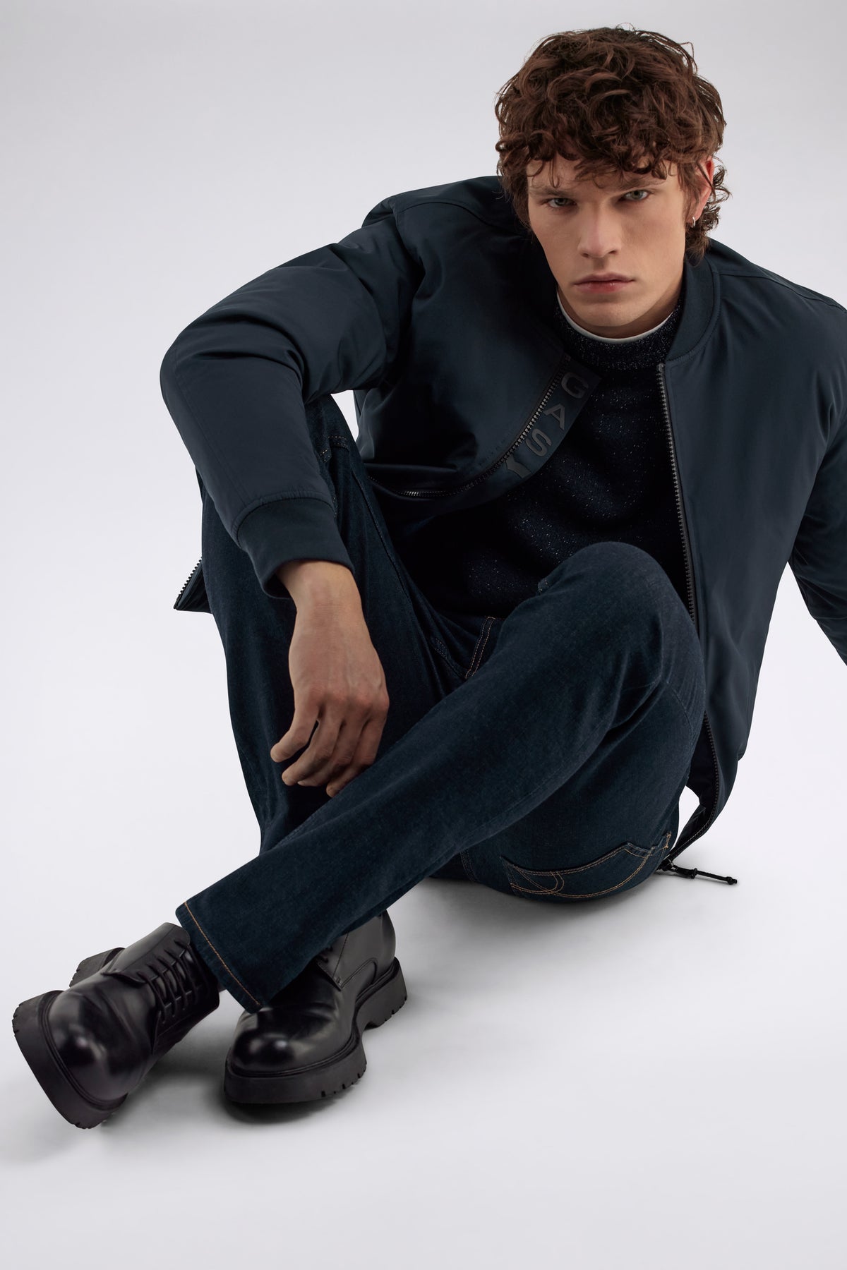 Undisputed best seller, these slim fit 5-pocket jeans are made from 12.40 OZ warm-hand stretch denim, with rinse wash. Clean, versatile, essential: an iconic garment that transcends seasons without losing identity. Perfect for those who seek quality, fit, and character in a single pair of jeans.