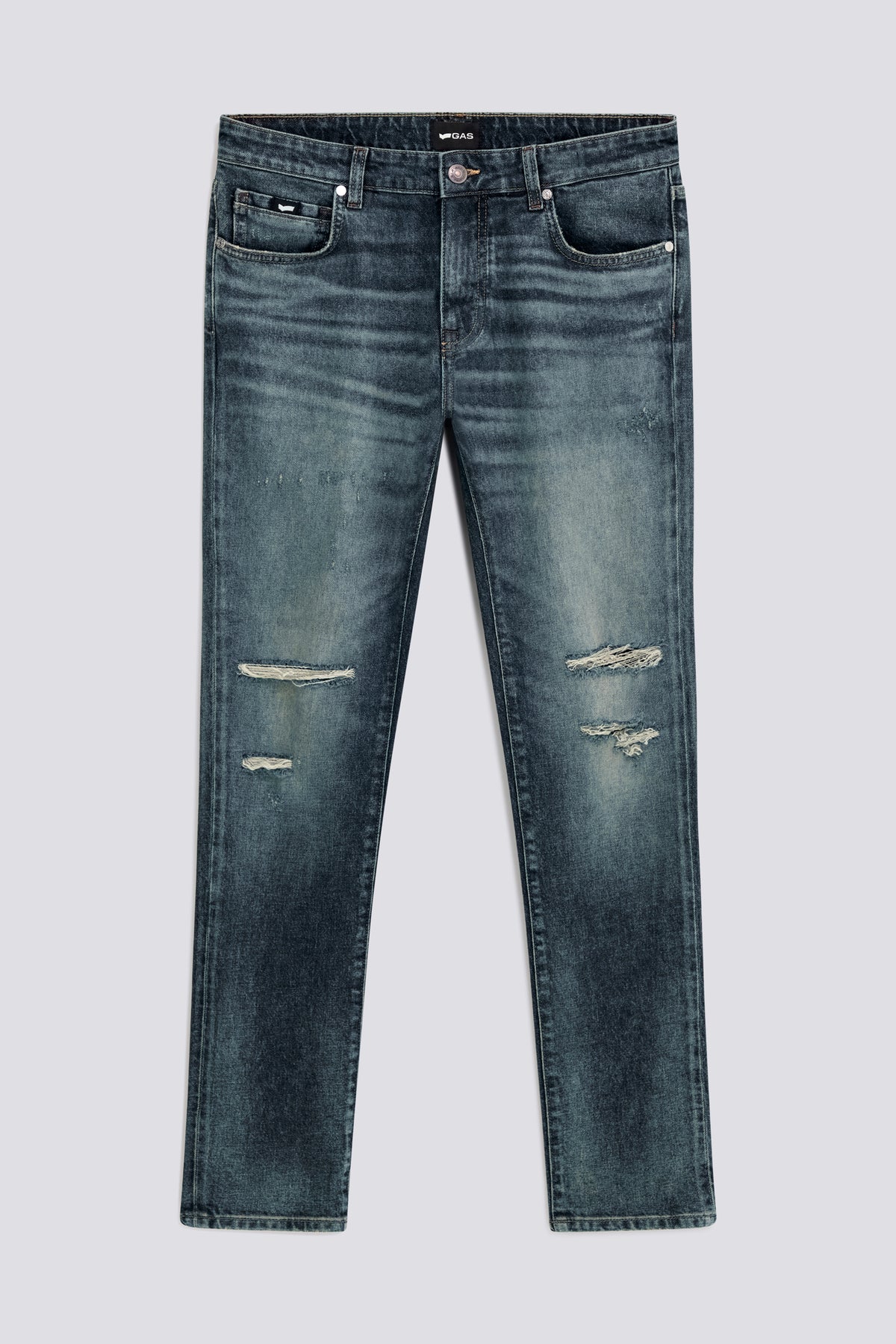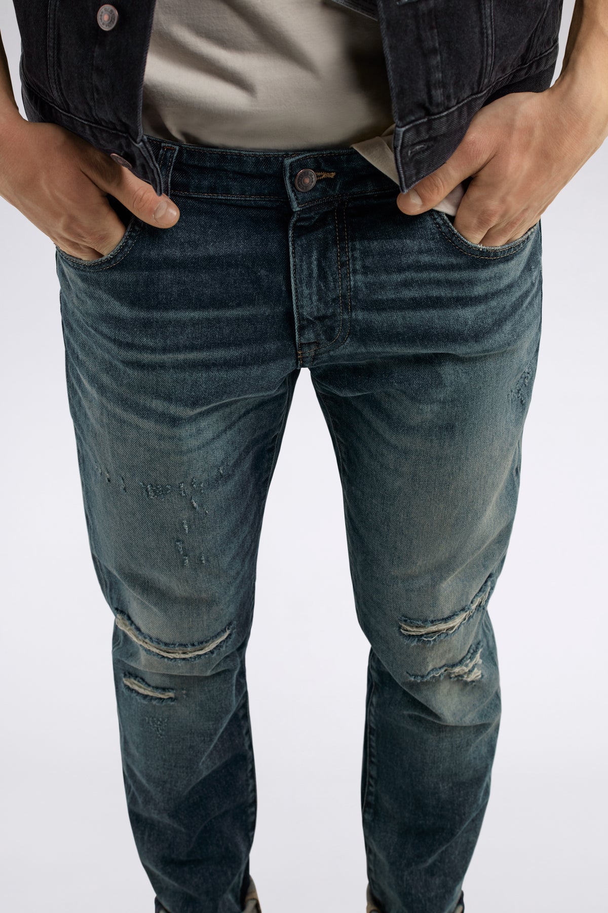Among our best sellers, this skinny fit 5-pocket denim is made of 11.70 OZ stretch fabric and enhanced by a medium dark blue wash with 3D whiskering. The slim fit sculpts the silhouette without compromising on comfort. An essential garment with a strong character, designed to last over time.