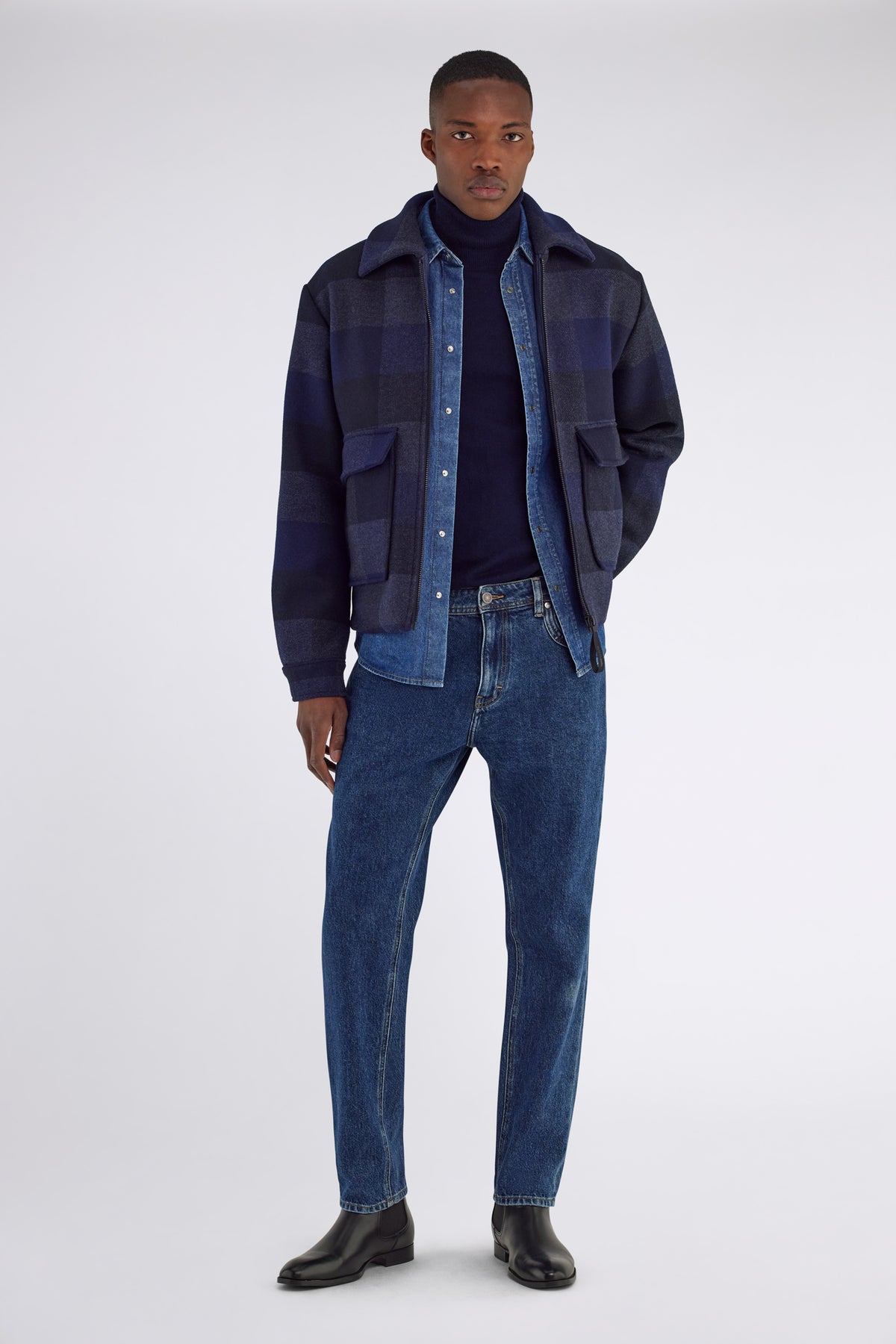 Five-pocket tapered fit denim in 12.10 OZ fabric with an authentic look. The dark blue wash adds depth. The construction details on the front and back pockets add a sophisticated twist to a garment designed to stand out.