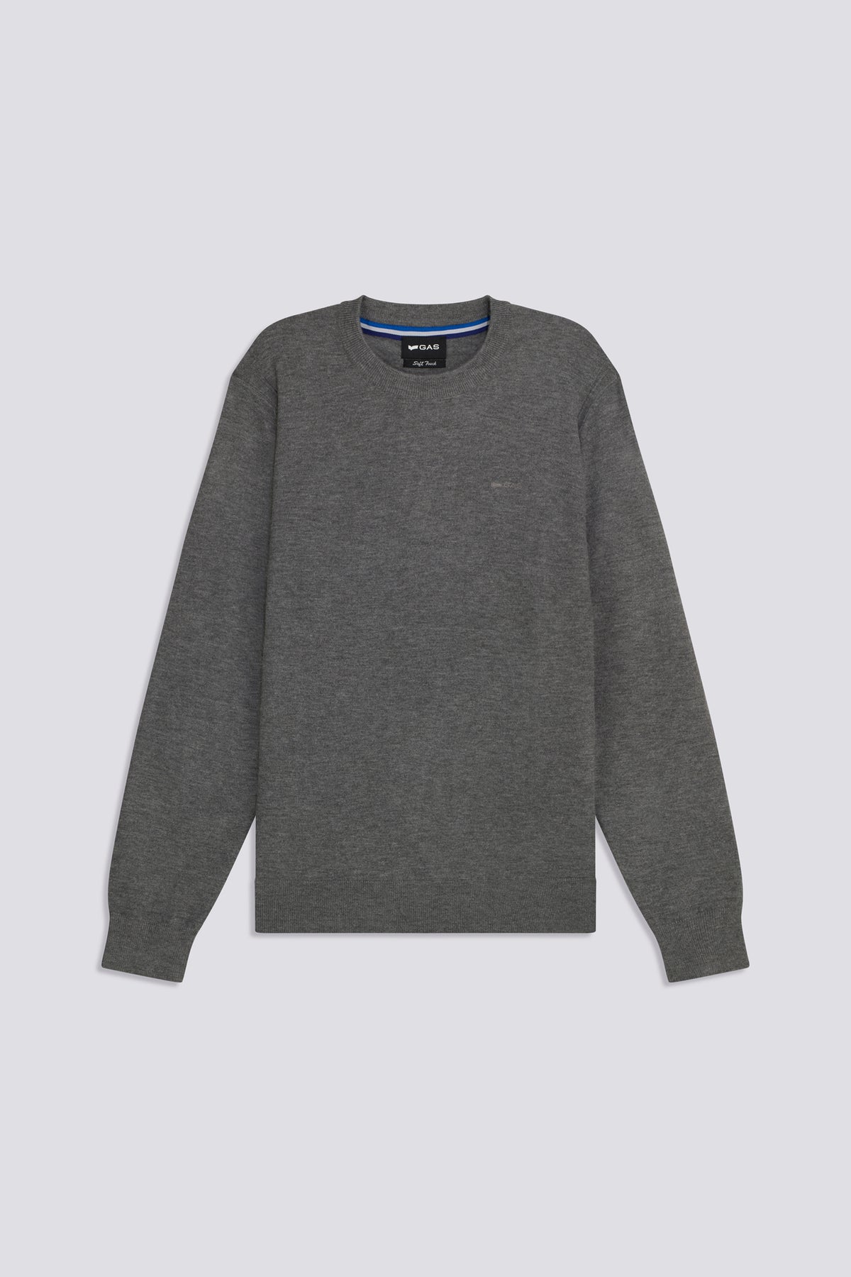 Slim fit crew neck sweater in gauge 12 yarn, soft and light to the touch. The striped trim on the back of the neck and the tonal logo embroidery on the chest define the look. A clean essential, perfect under a blazer or on its own with denim or chinos.