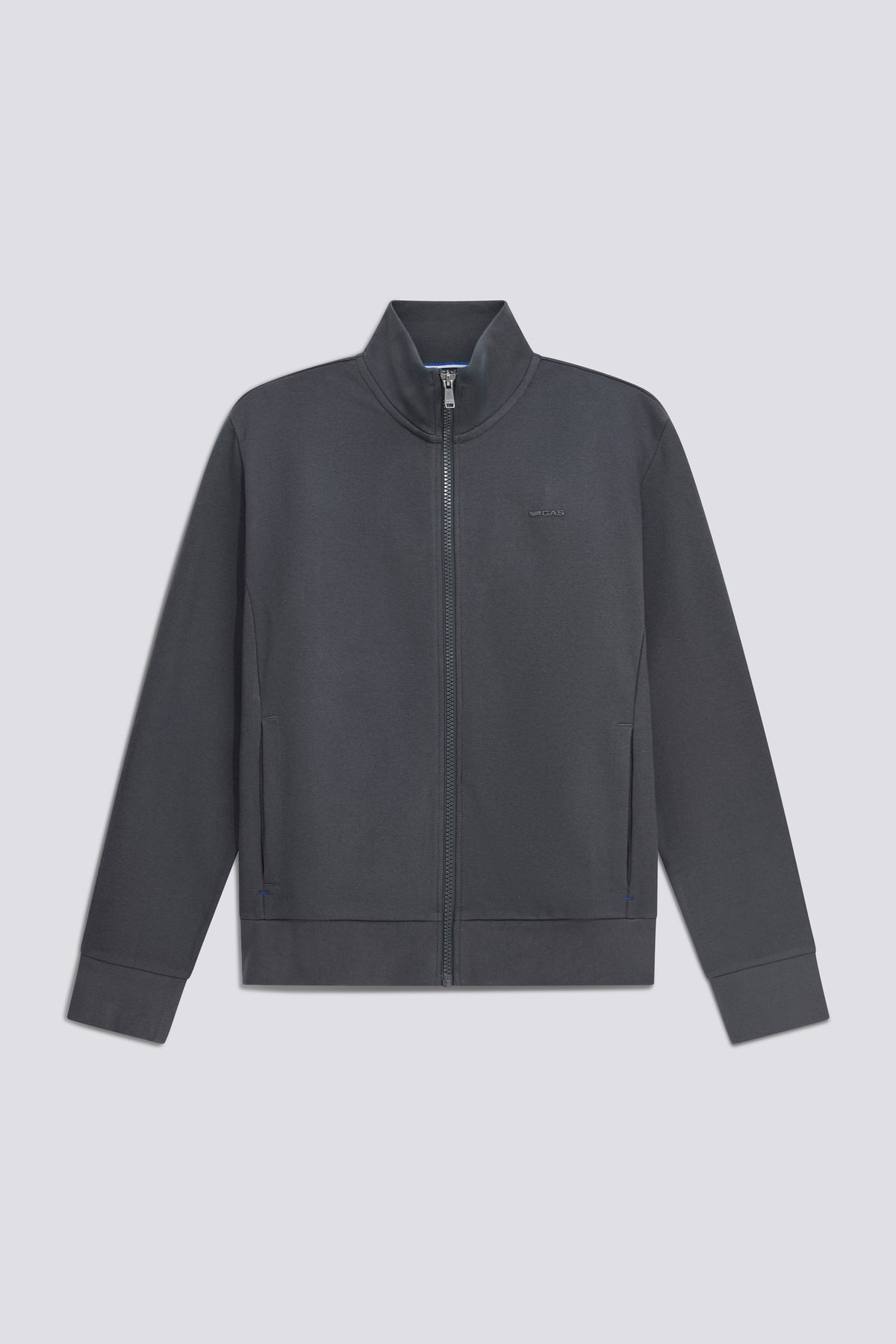 Men's full-zip sweatshirt, regular fit, made from a cotton blend. The embossed tone-on-tone logo print on the chest and the striped inner sweatband add distinctive details to a piece designed for a casual yet refined style.
