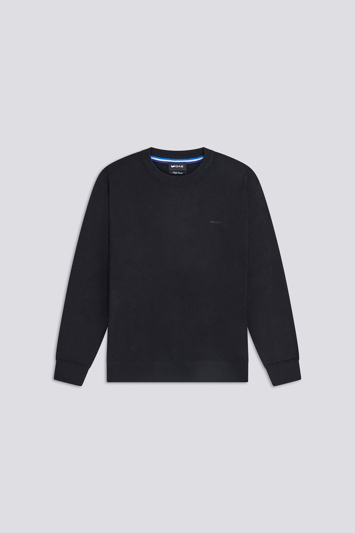 Slim fit crewneck sweater in 12-gauge fine yarn, soft and lightweight to the touch. The striped trim on the back of the neck and the tonal logo embroidery on the chest complete the look. A clean essential, perfect under a blazer or on its own with denim or chinos.