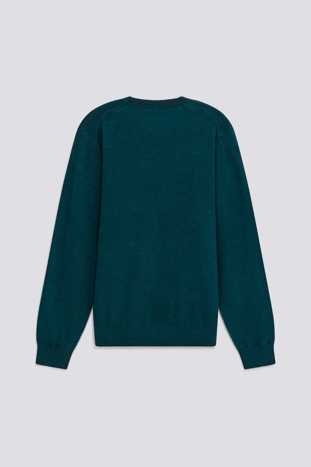 Slim fit crew neck sweater in 12-gauge yarn, soft and light to the touch. The striped edging on the back of the neck and the tonal logo embroidery on the chest add signature details to the look. A clean essential, perfect under a blazer or alone with denim or chinos.