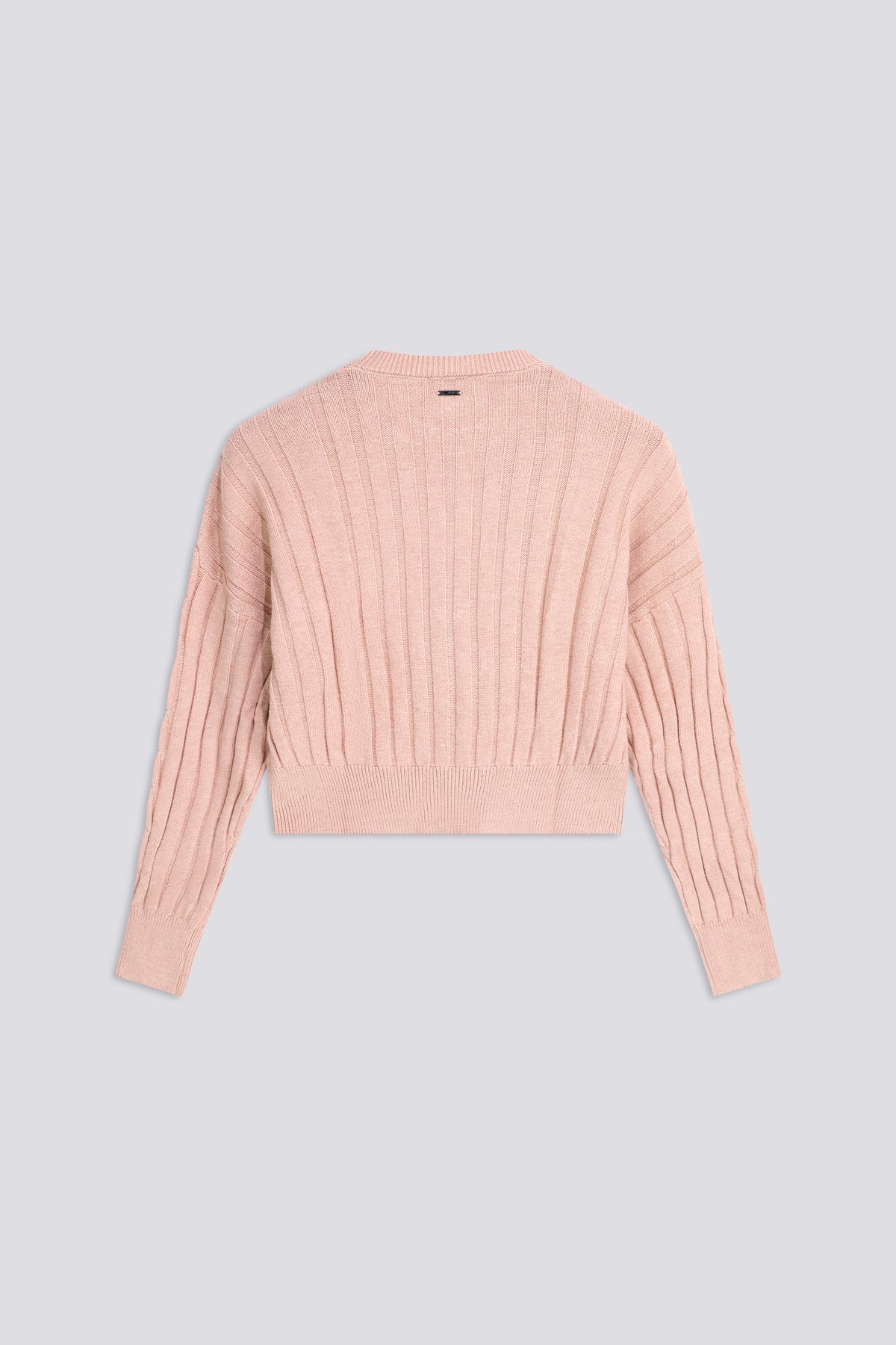 Regular fit crew neck sweater with refined cable knit detailing, made from a fine gauge 12 viscose blend yarn that combines softness and style. Iconic details like the metal plaque on the back and the 'G' pendant on the left side add a distinctive touch. A versatile garment to wear with your favorite denim, perfect for elevating any look with effortless elegance.