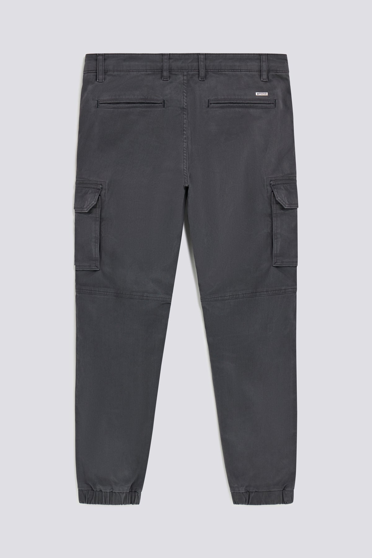 Cargo slim fit with a sharp cut and urban style. The side cargo pockets and the welt pockets on the back combine functionality and character, while the elastic at the bottom adds a street touch.