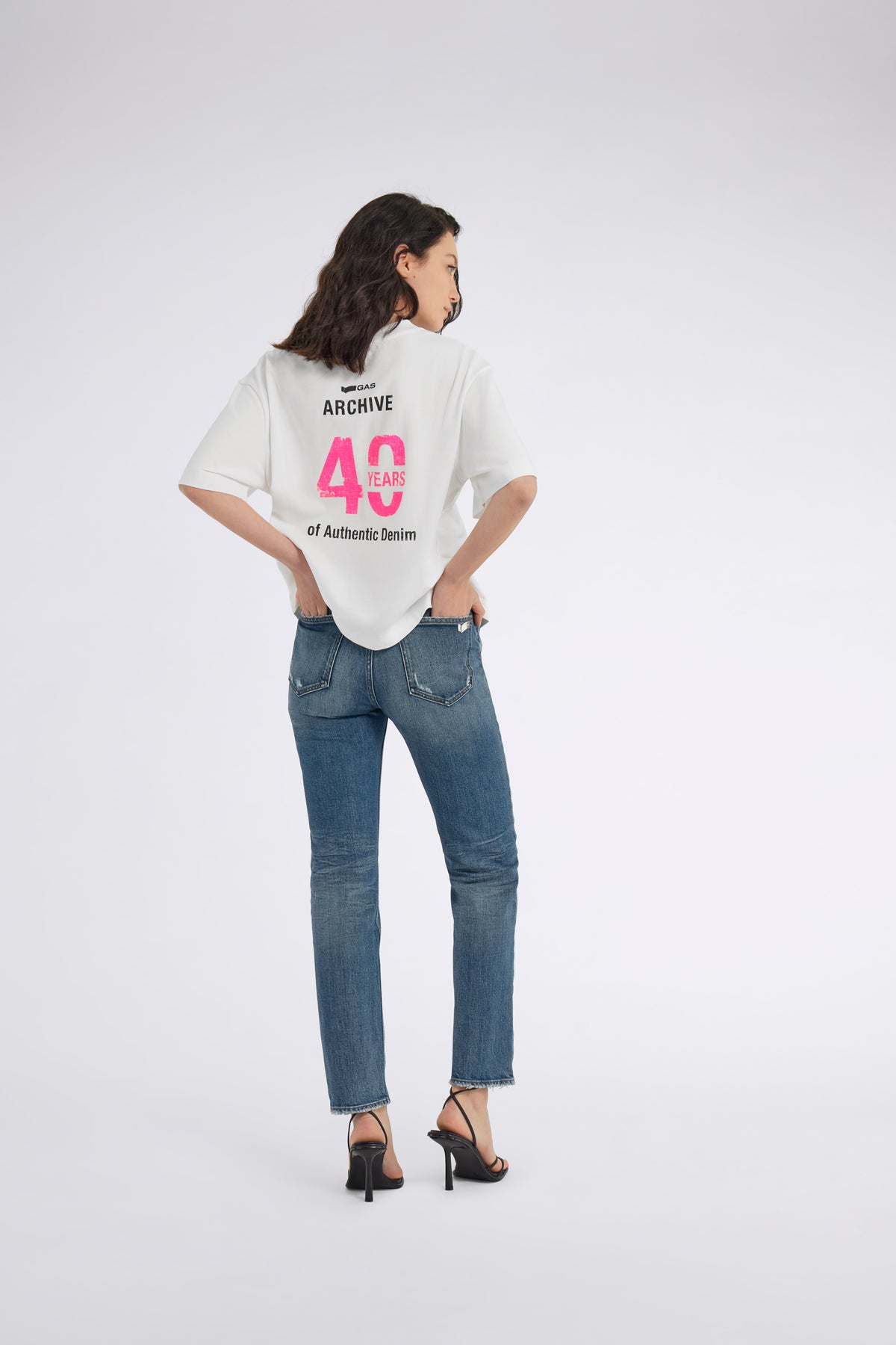 Women's 5-pocket slim-fit denim, crafted from premium quality comfort fabric, entirely Made in Italy. With a weight of 11.5 OZ and an authentic look, this model represents an icon of style and practicality, designed to enhance the silhouette with a flawless fit. Perfect for any occasion: pair it with a shirt for an elegant look or a t-shirt for a casual chic style.