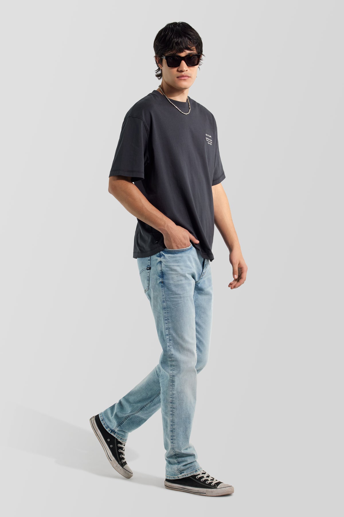 - Medium light stone wash with subtle abrasions