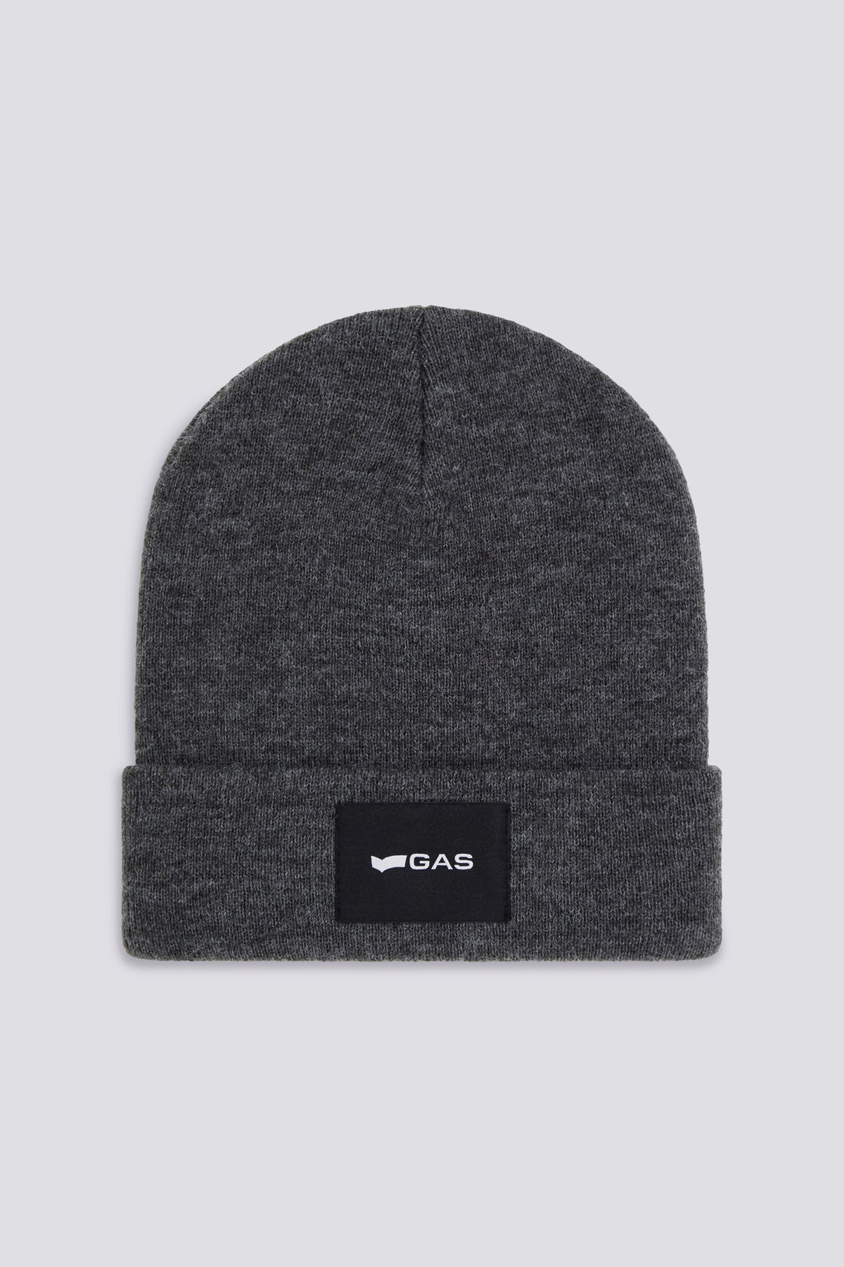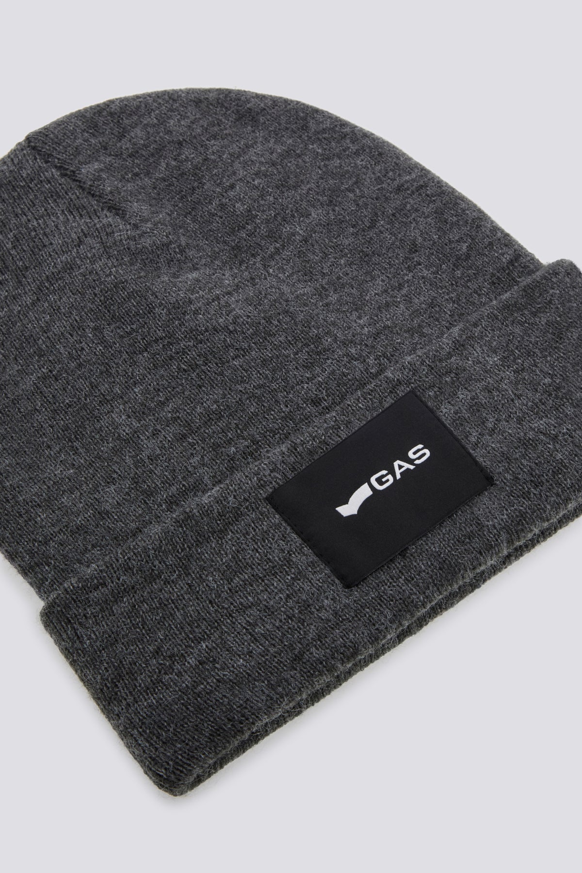 Ribbed knit beanie hat with cuff and jacquard logo label applied at the center. A cool and functional accessory, perfect for adding an urban touch to winter outfits.