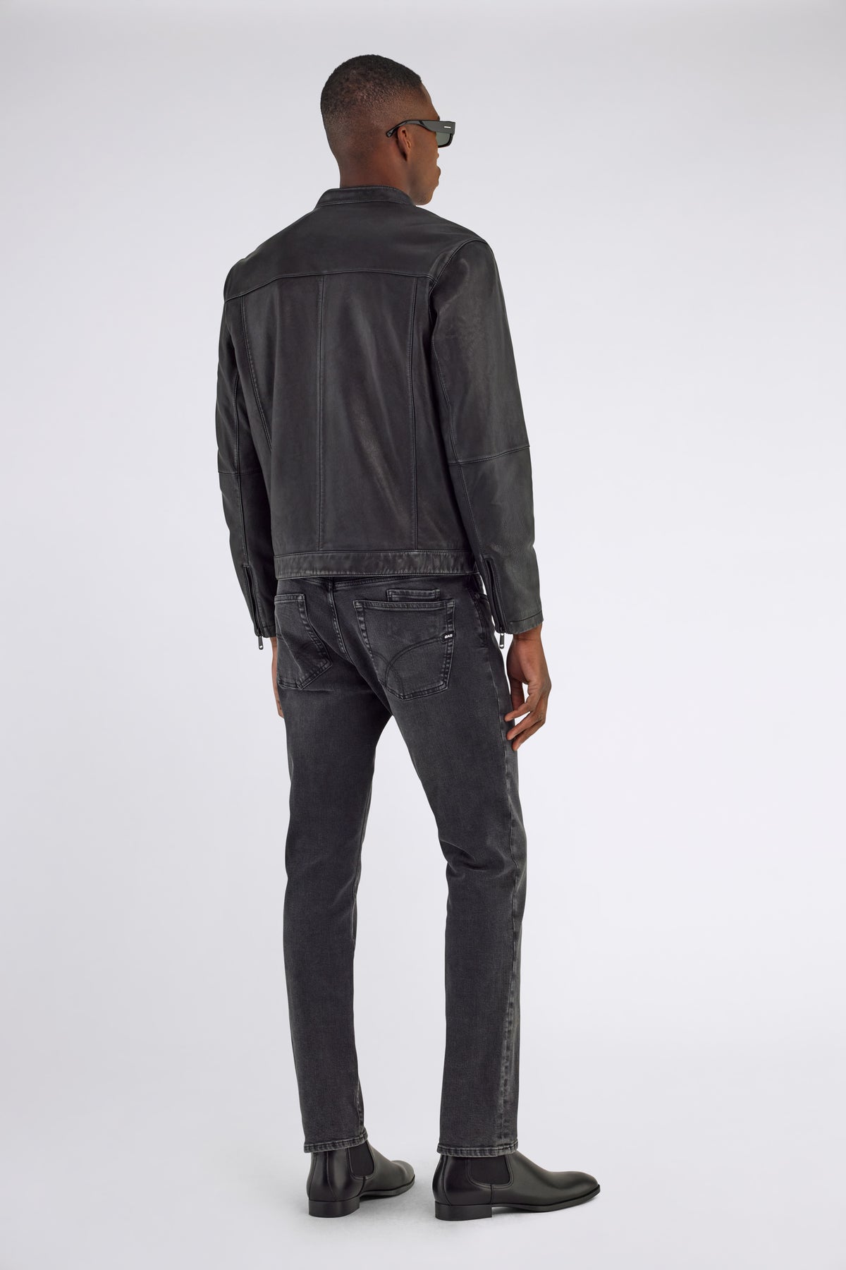 Authentic, essential, contemporary. These slim fit jeans are made from 13.25 OZ indigo blue stretch denim, dark black wash. Completing the Plus model is the 6th pocket positioned in the right back pocket.
