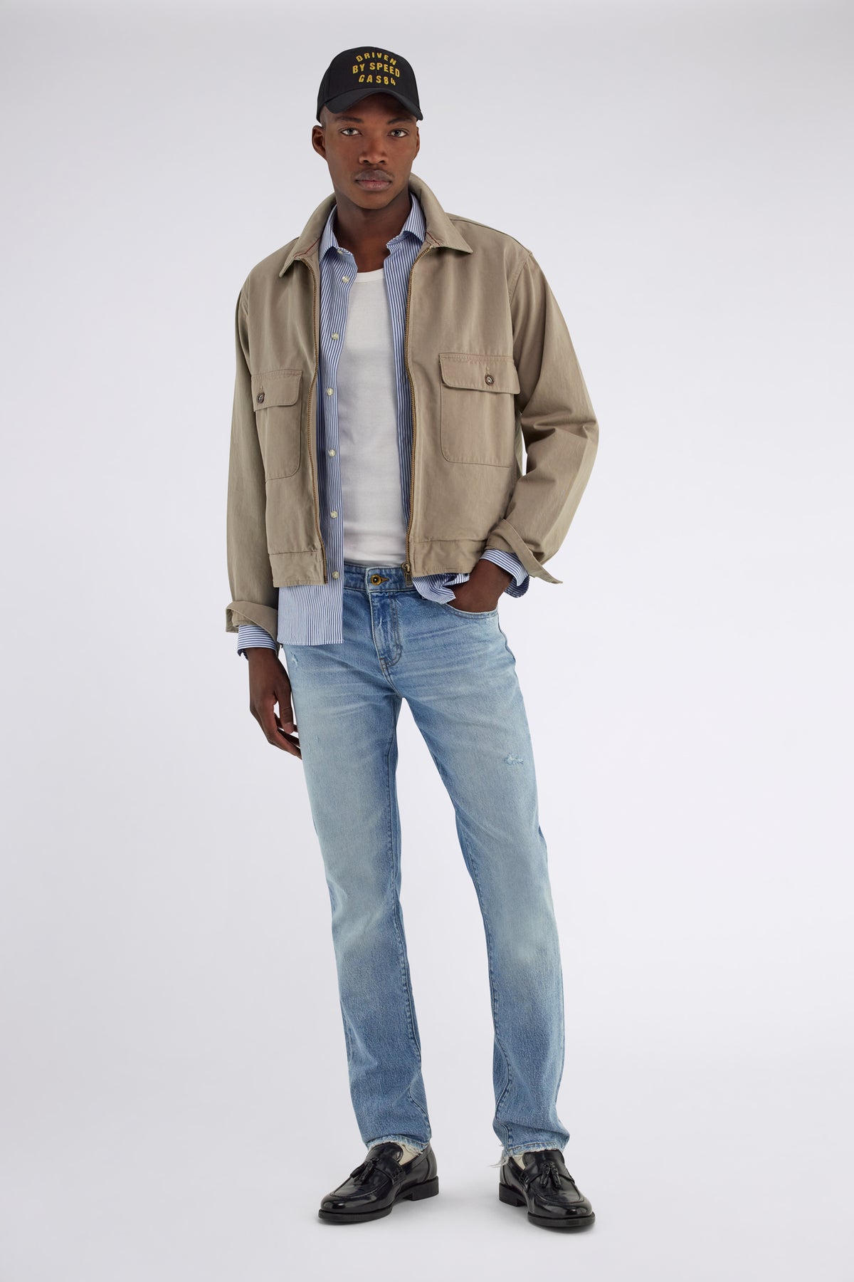 Men’s 5-pocket slim fit jeans in blue indigo comfort denim, 13.40 oz. The medium light stone wash is enhanced with minor abrasions that add character to the garment. The comfort denim combines with a slim fit, making it one of the most versatile styles in the GAS wardrobe: easy to pair with everyday looks, from casual to more refined, with an attitude that remains consistent over time.