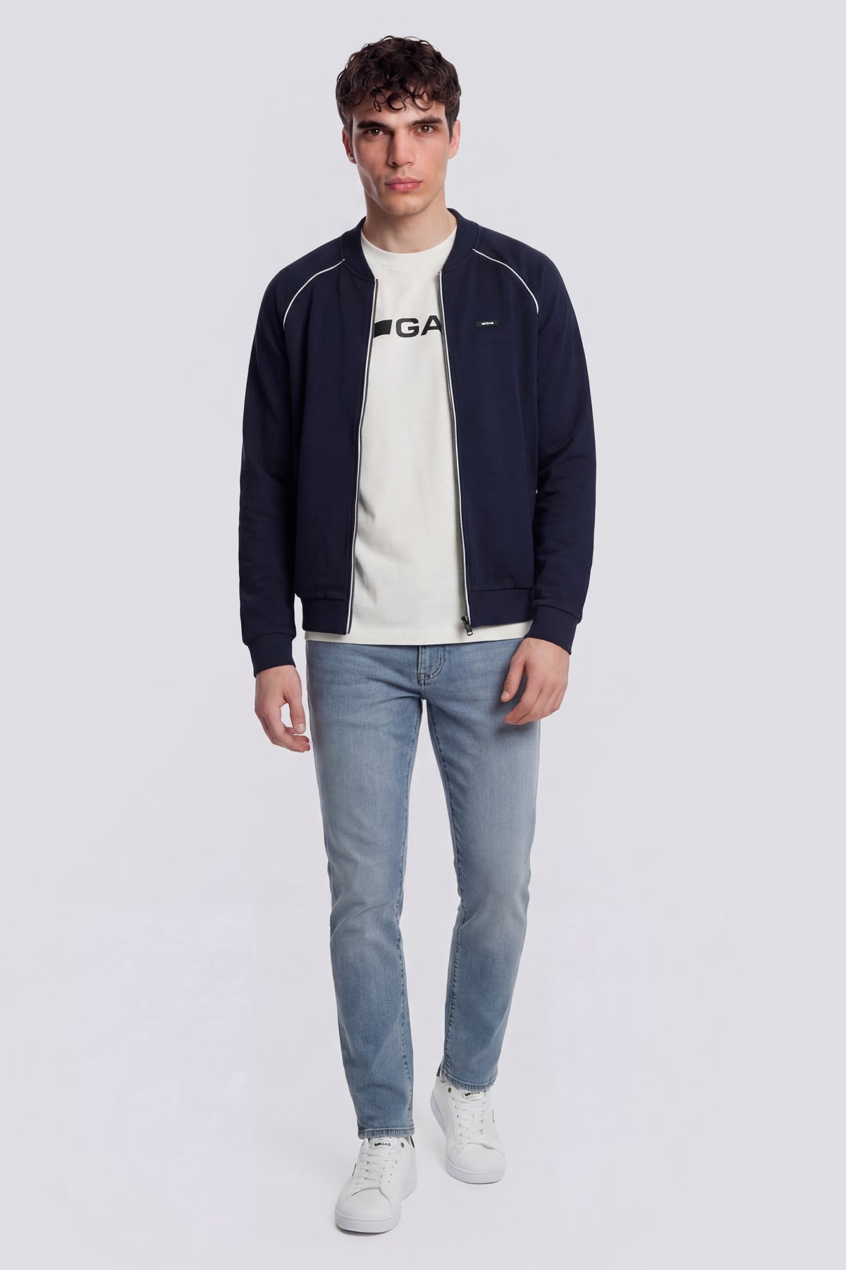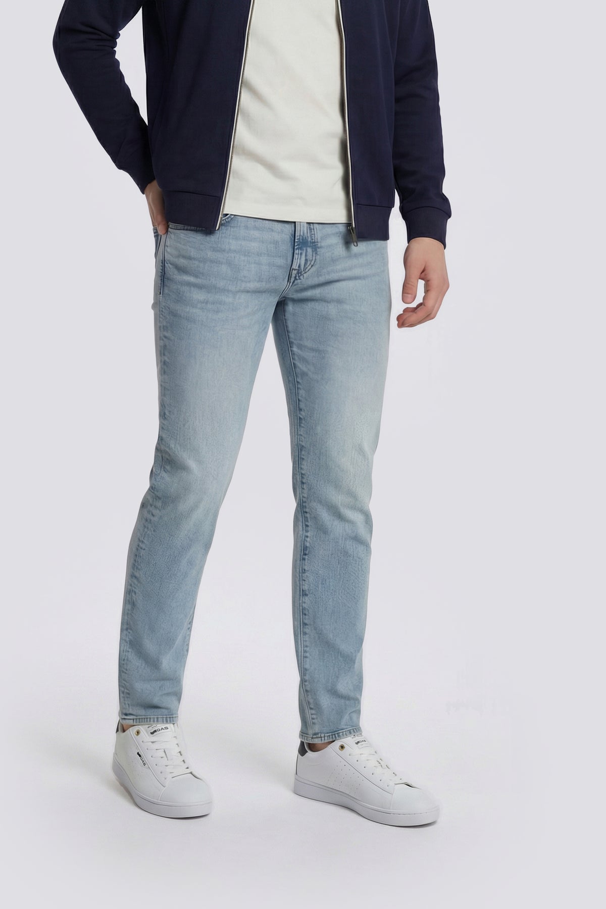 Men’s 5-pocket skinny fit jeans in 10.50 oz stretch denim. The medium light stone wash with subtle abrasions evenly lightens the indigo. The lightweight stretch fabric follows the silhouette, ensuring comfort and versatility—ideal for more relaxed outfits with a modern attitude.