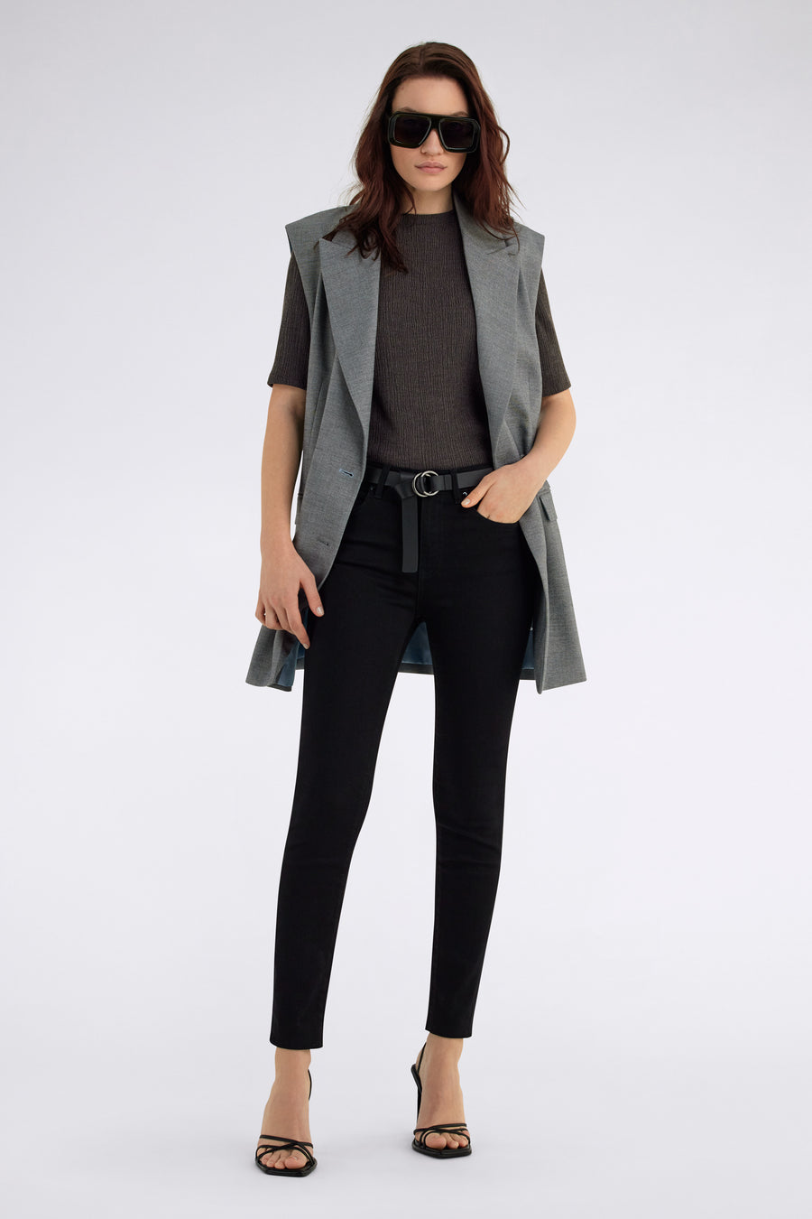 - Details: Pinces at the waist, metallic logo plaque